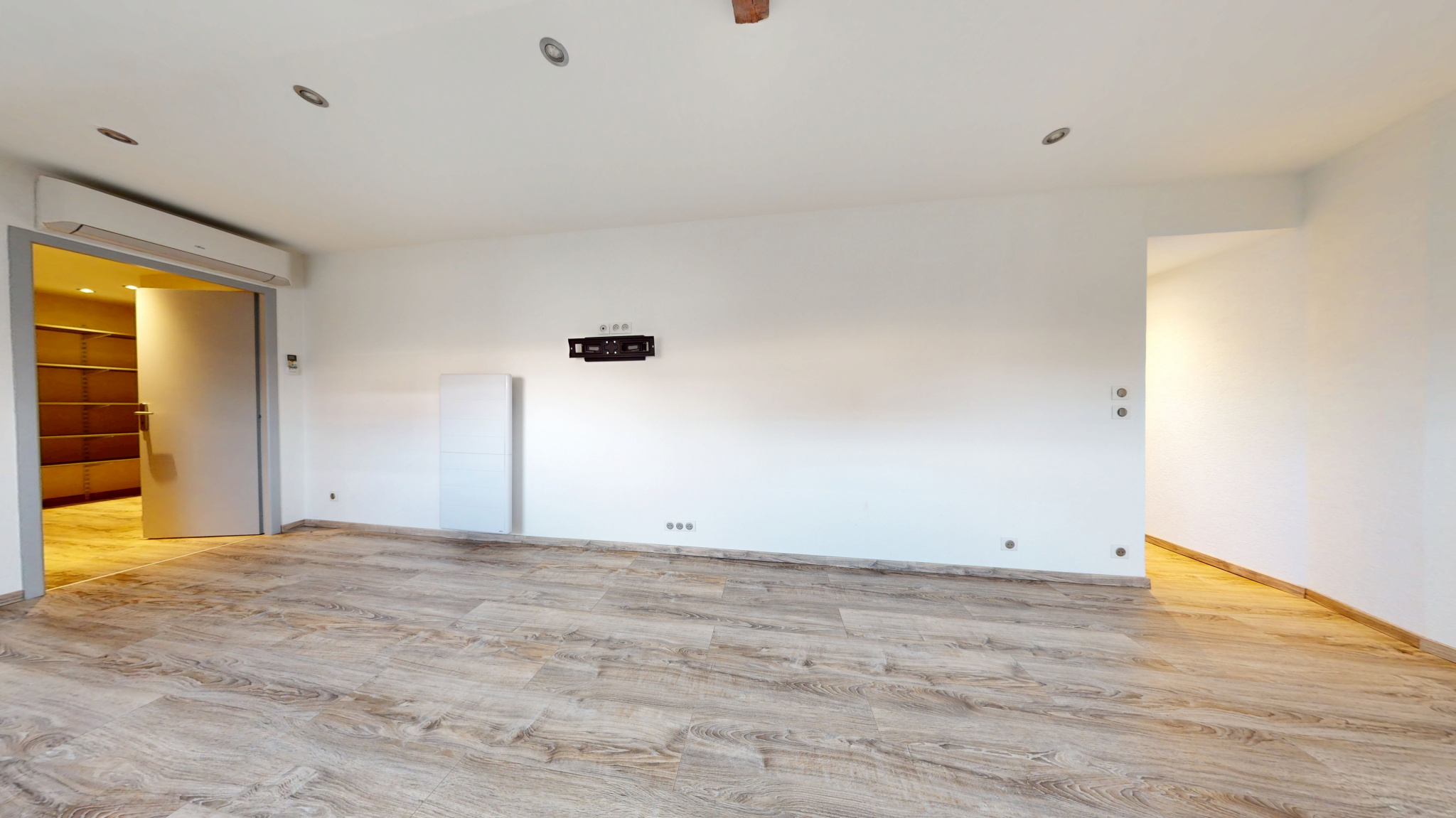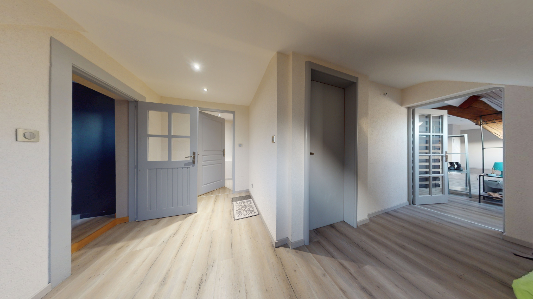 Il se compose d'une entrée spacieuse, d'une cuisine aménagée ouverte sur un vaste salon séjour, d'un second espace salon pouvant faire office de bureau ou coin détente, de deux chambres dont une avec dressing, d'une salle de bain, d'une salle d'eau, de deux WC et d'un cellier, grenier aménageable.