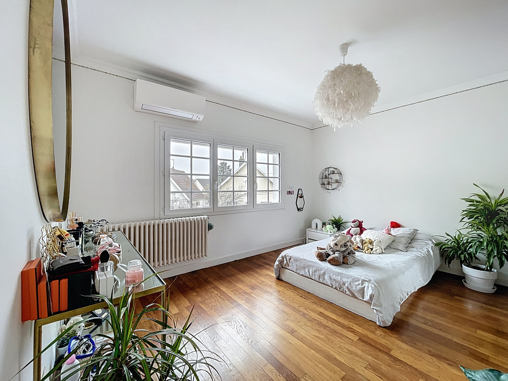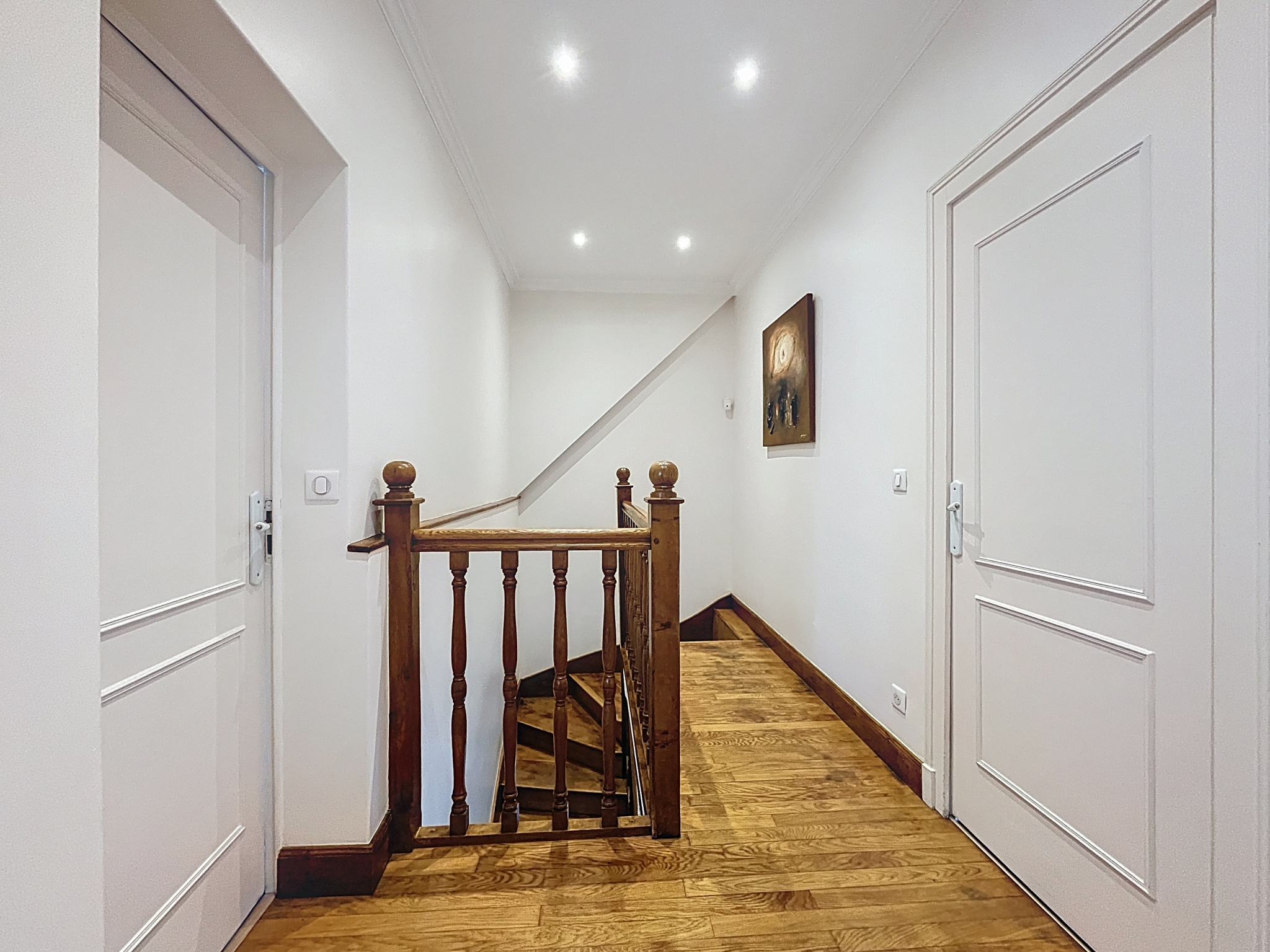 À l'étage, un palier dessert quatre chambres. Deux d'entre elles disposent d'un dressing attenant, tandis qu'une chambre bénéficie également de sa salle de douche privative. Une salle d'eau indépendante avec un WC