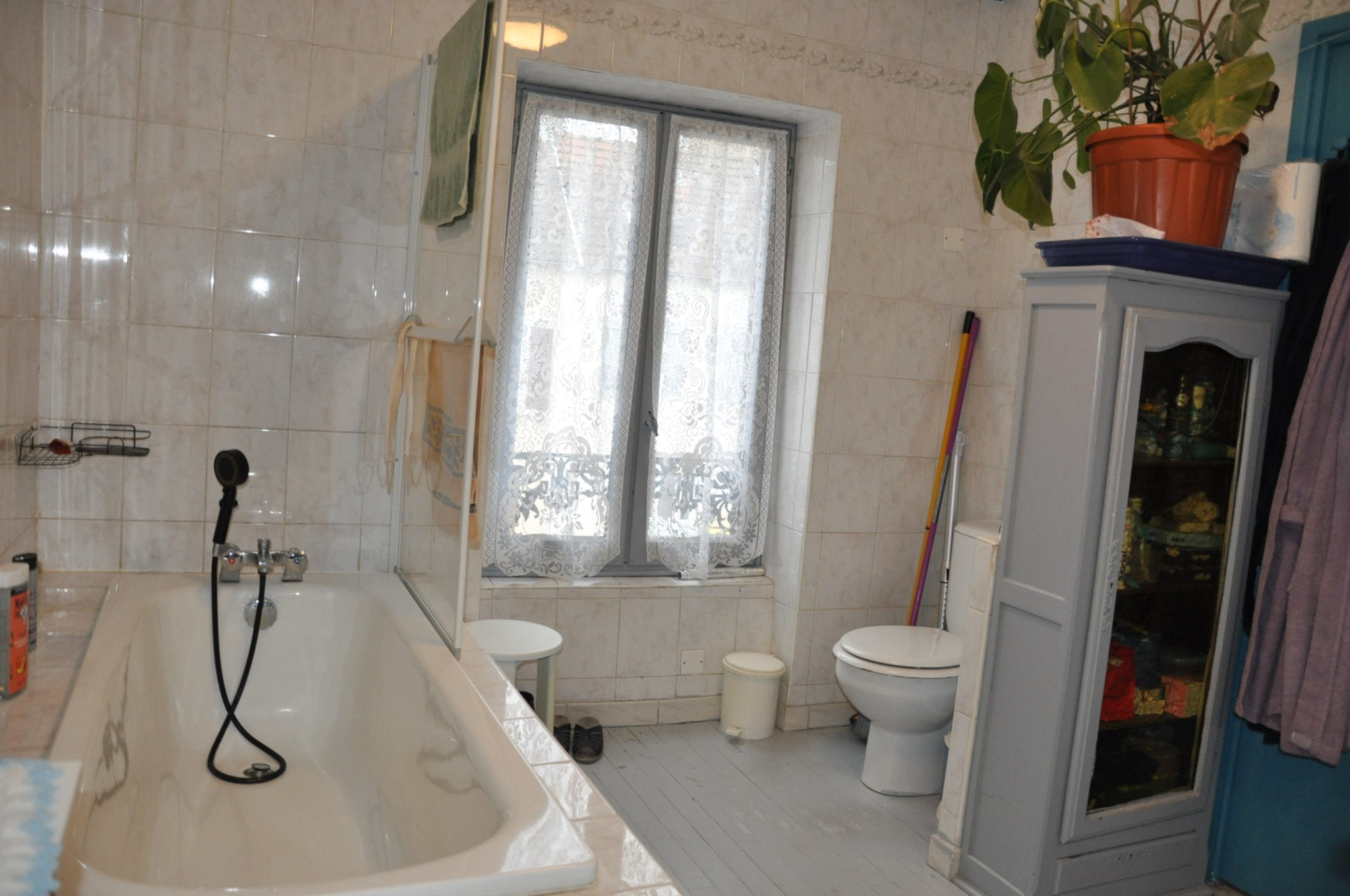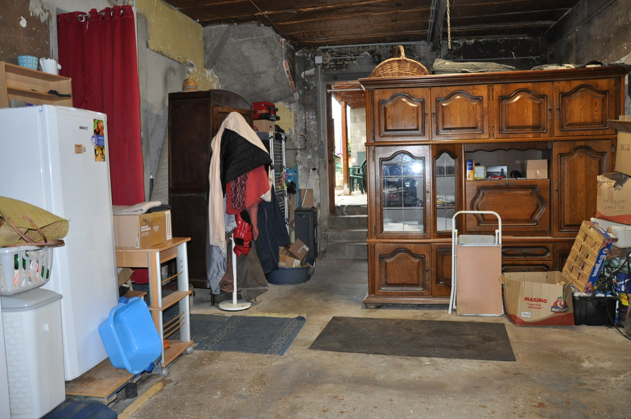 En plein centre-ville de LAPALISSE : Maisonmitoyenne des 2 côtés comprenant au rez-de-chaussée un garage traversant de 37,50 m2 sur dalle béton, avec un chauffe-eau, un WC indépendant, et un dégagement, à l'étage, un palier desservant une chambre de 16 m2 sur parquet, une cuisine aménagée de 14,80 m2, et une salle de bain avec WC de 8 m2 (baignoire, lavabo et WC).