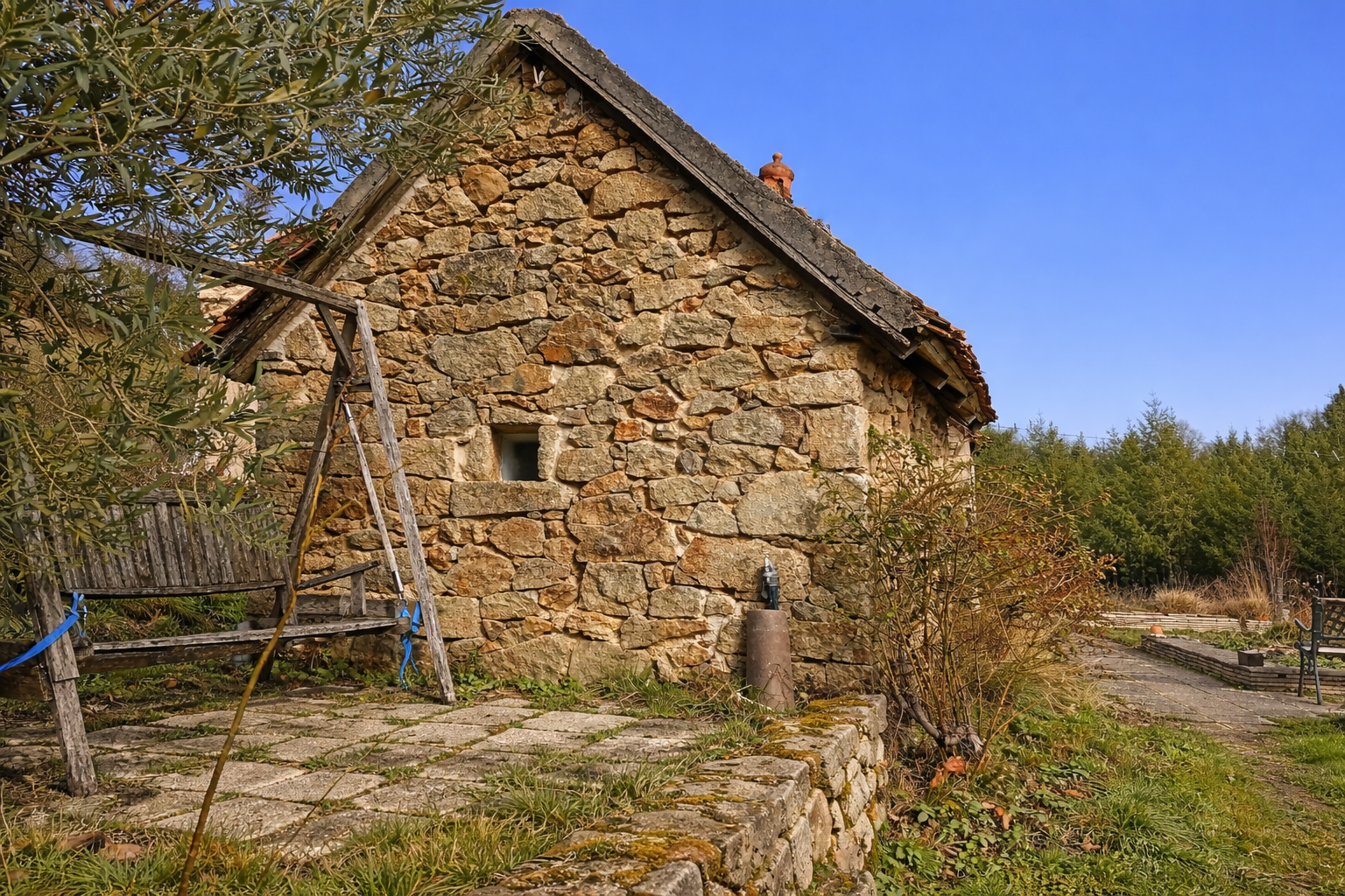 Sur le terrain se trouve un charmant sécadou en pierre naturelle (6,5 m2), aménagé en hébergement d'appoint avec kitchenette, douche et couchage.