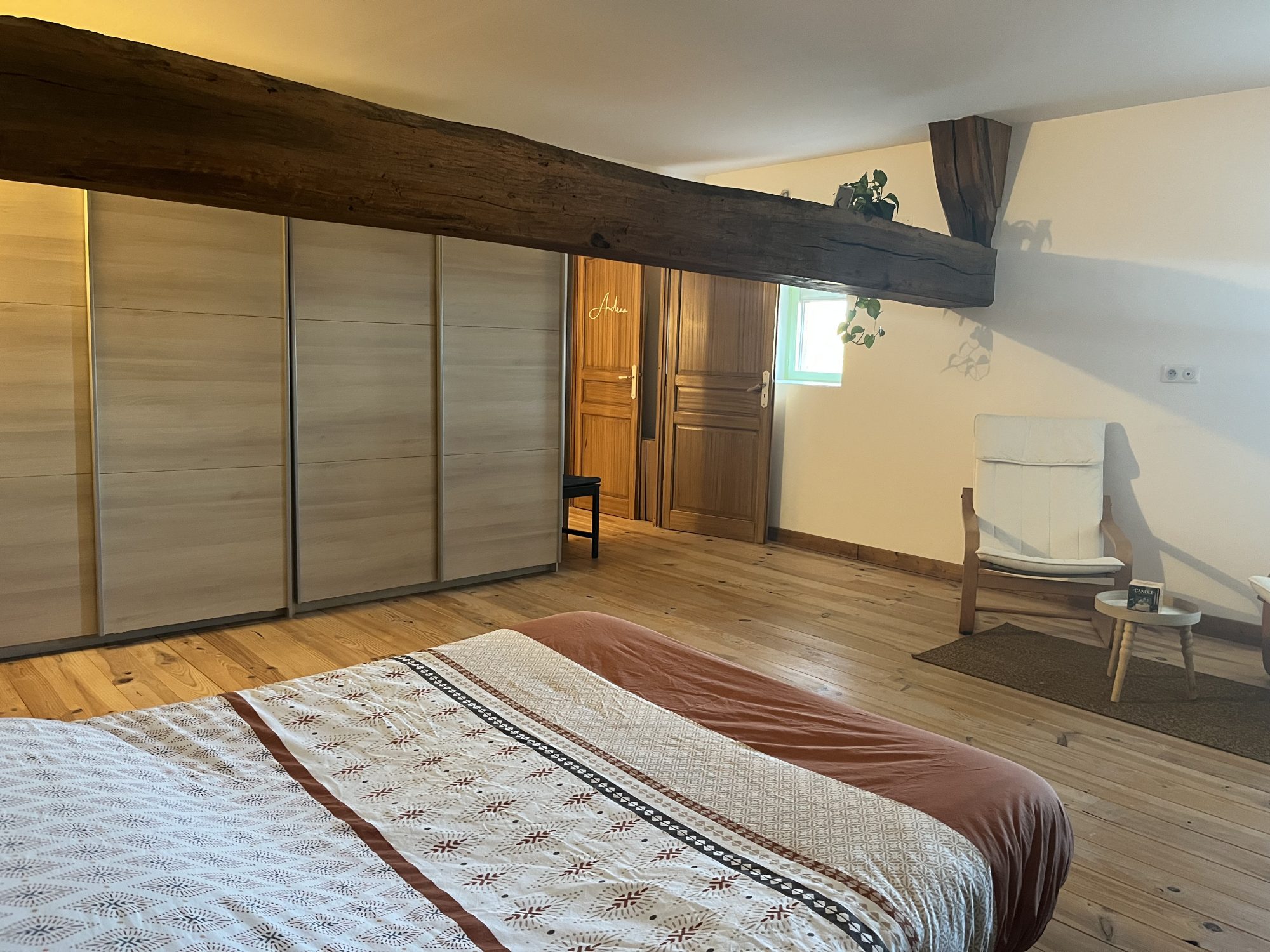 A VENDRE, VILLAGE DU TOURNUGEOIS, 15 mn TOURNUS OUEST, maison bourguignonne en pierre entièrement rénovée de 83 m² habitables, type 3 avec dépendances. Elle comprend au premier étage : une pièce de vie avec espace cuisine aménagée et séjour donnant sur une agréable galerie couverte, salle d'eau et toilettes séparées. Au deuxième étage : dégagement desservant une grande chambre principale avec parquet en pin et une autre chambre plus petite et légèrement mansardée. Grenier partiellement aménageable au-dessus. Cave en terre battue et buanderie en dessous. La maison est équipée d'un poêle à granulés performant, de radiateurs électriques à inertie et d'un sèche-serviette associés à une bonne isolation murs, combles, plancher et huisseries en double vitrage bois. L'électricité et les toitures ont été refaites et la maison est reliée au tout à l'égout. A ceci s'ajoute une grange séparée en terre battue de 50 m² environ avec mezzanine au dessus. L'accès à la maison orientée Ouest se fait par une cour indivise gazonnée avec un petit espace privatif. Elle se situe au calme dans un hameau du village d'Etrigny.