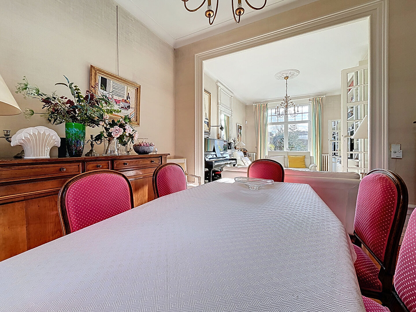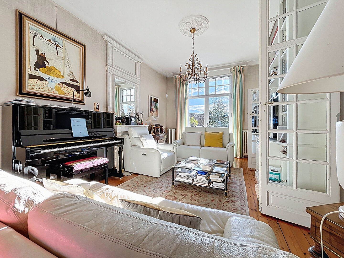 Elle se compose d'un élégant salon avec cheminée, d'une vaste cuisine, de quatre chambres, chacune disposant de sa salle d'eau privative, d'un bureau, d'une buanderie, ainsi que de plusieurs espaces offrant un fort potentiel d'aménagement.