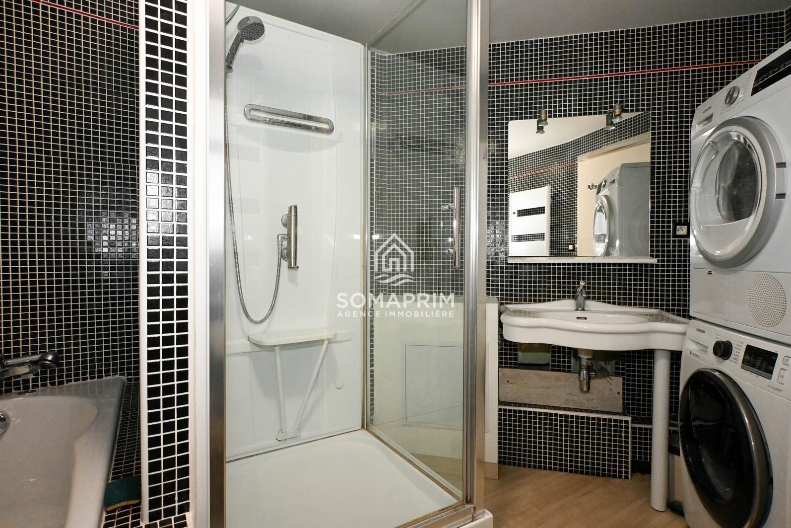 Salle d'eau avec douche et baignoire idéale pour les retours de plage