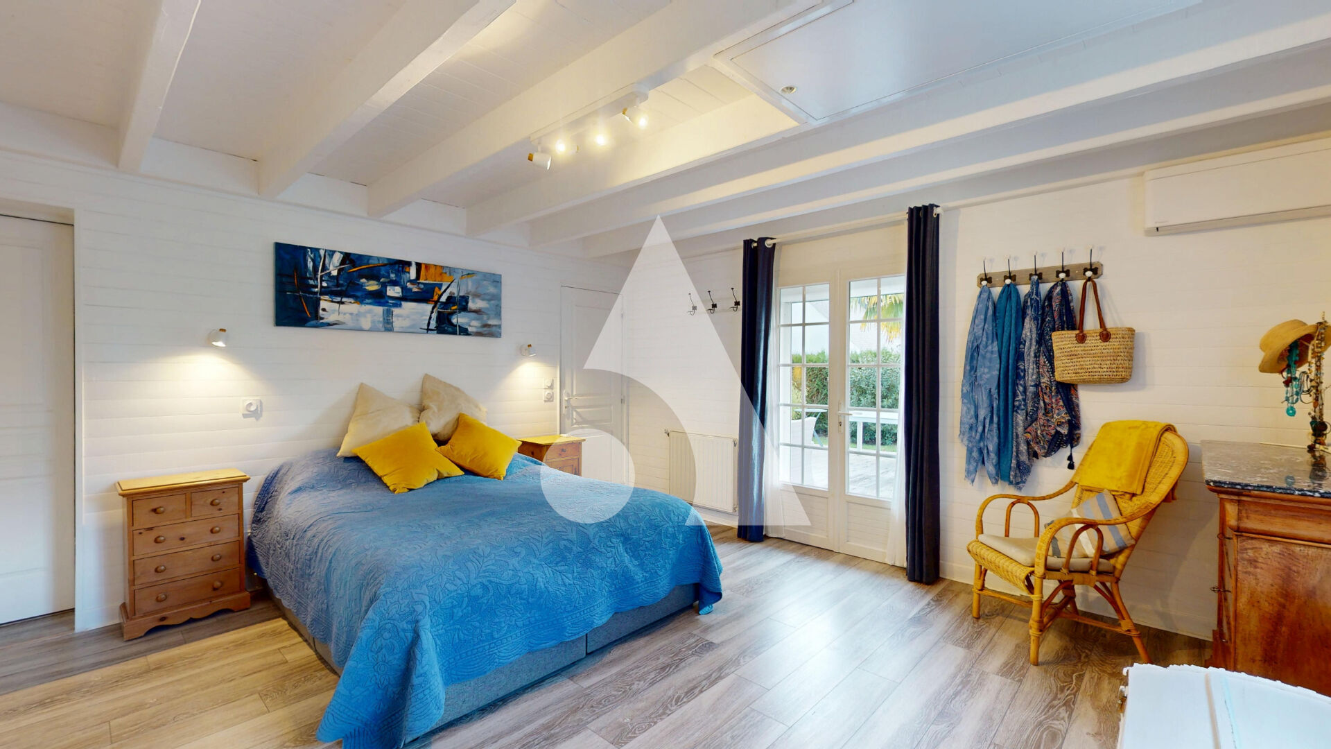 La partie nuit du rez-de-chaussée se compose d'une belle suite parentale avec salle de bains, dressing et accès direct à la terrasse et au jardin arboré, véritable havre de paix. Un bureau et une buanderie viennent parfaire ce niveau, idéal pour le télétravail.