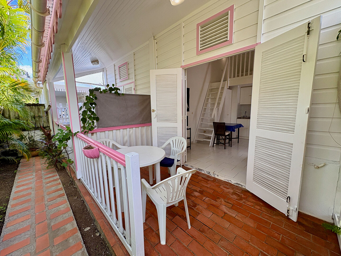 En annexe, quatre studios indépendants offrent chacun une terrasse privative, un séjour, une salle d'eau avec WC et une chambre en mezzanine. Ces annexes peuvent facilement être reliées à la partie centrale pour créer un grand espace de vie dans la maison principale avec quatre chambres séparées.