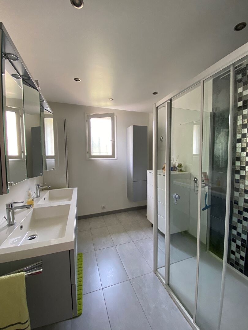 Comprenant au rdc: une spacieuse entrée avec placard, une cuisine séparée de 16 m² et équipée, un séjour double de 35 m² donnant sur terrasse, deux chambres , un bureau, une salle d'eau et un wc séparé.