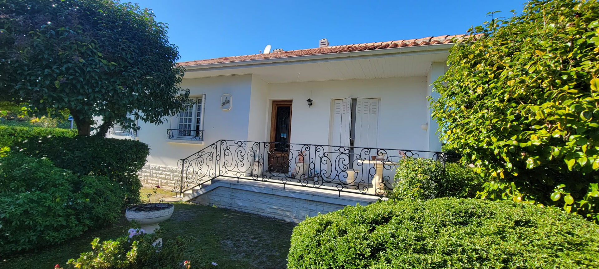 Édifiée sur un terrain arboré de 900 m² sans vis à vis, la maison bénéficie d'une belle exposition Sud-Ouest garantissant calme et intimité au quotidien. Elle se compose d'une entrée, d'un salon et d'un séjour lumineux, d'une cuisine, d'un cellier, de deux chambres confortables, d'une salle de bain ainsi que d'un WC indépendant.