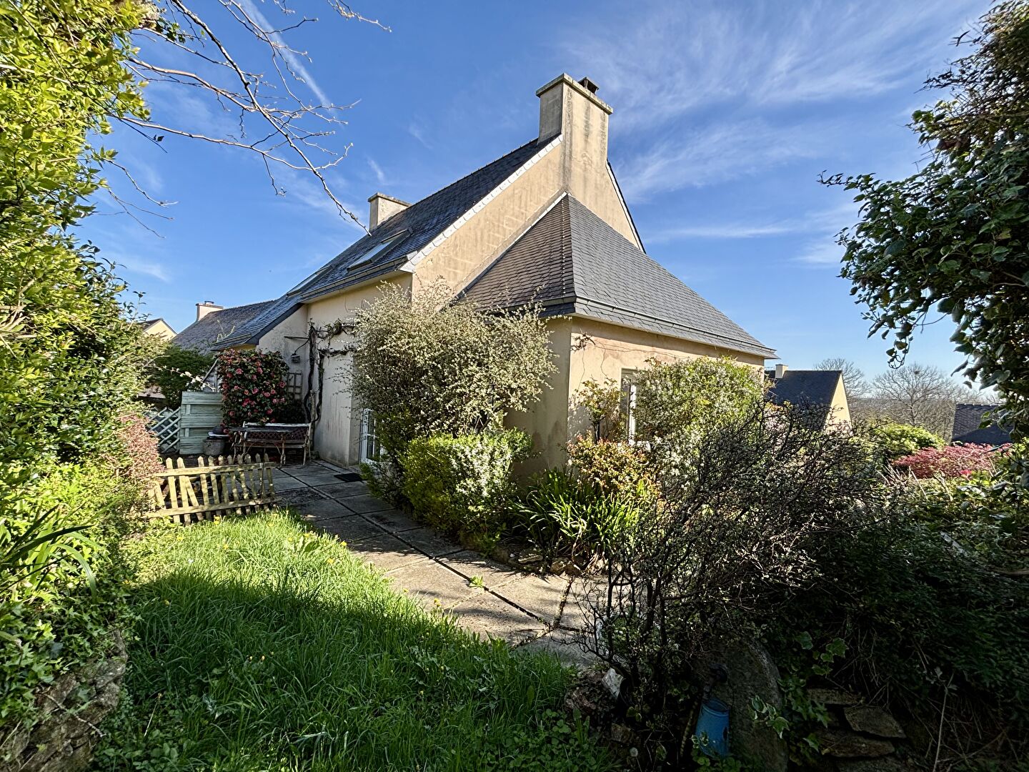Nouveauté, Quimper Sud, Ergué Armel, en impasse, jolie maison traditionnelle de 1997, sur sous sol complet, offrant un hall, spacieux séjour salon avec accès au Sud sur terrasse et jardin sur 729 m² clos sans vis à vis, cuisine aménagée, 4 chambres dont une suite parentale avec sde,. Sous sol avec garage et atelier. Un emplacement prisé pour cette maison familiale de qualité, à découvrir rapidement !