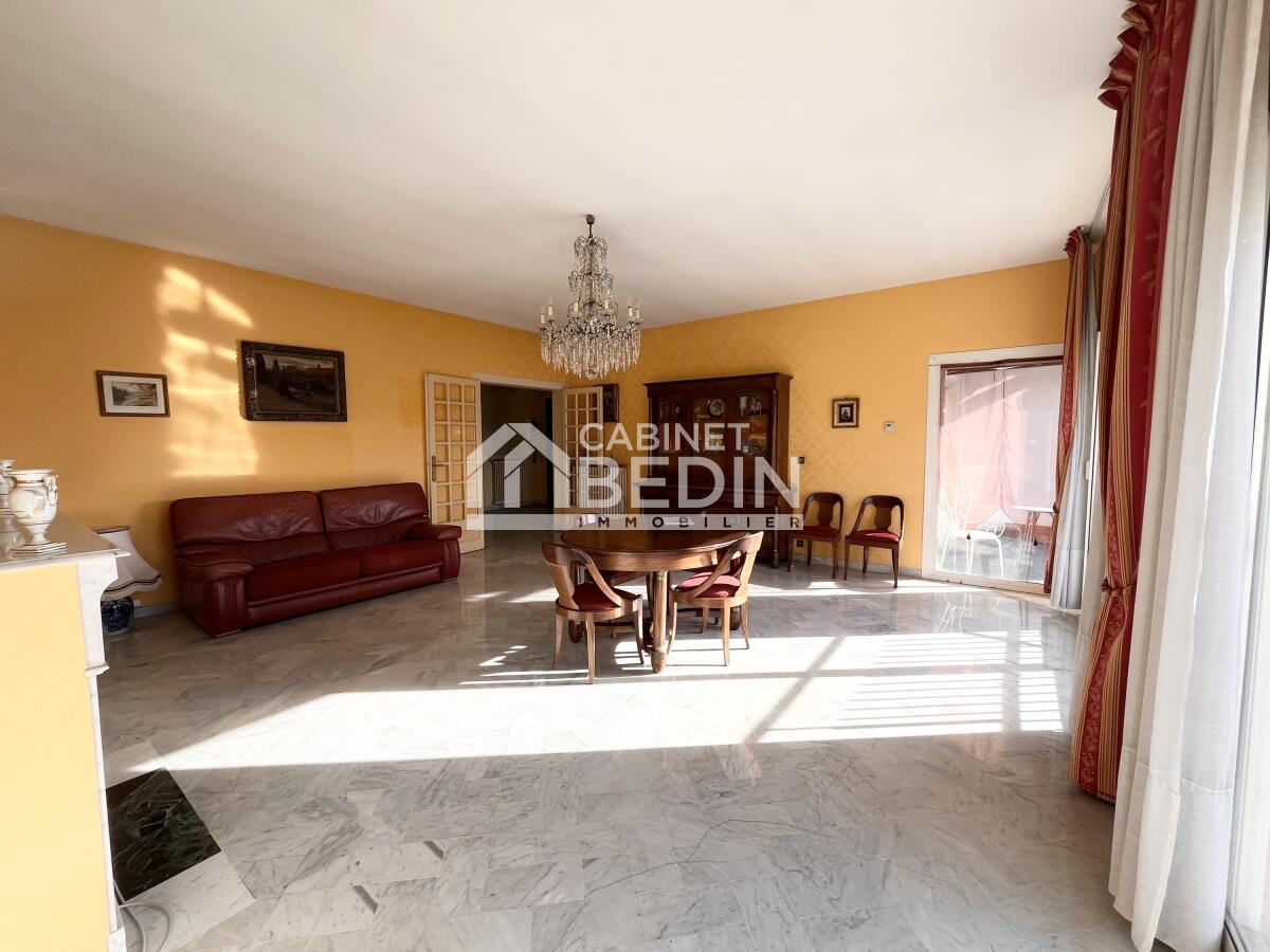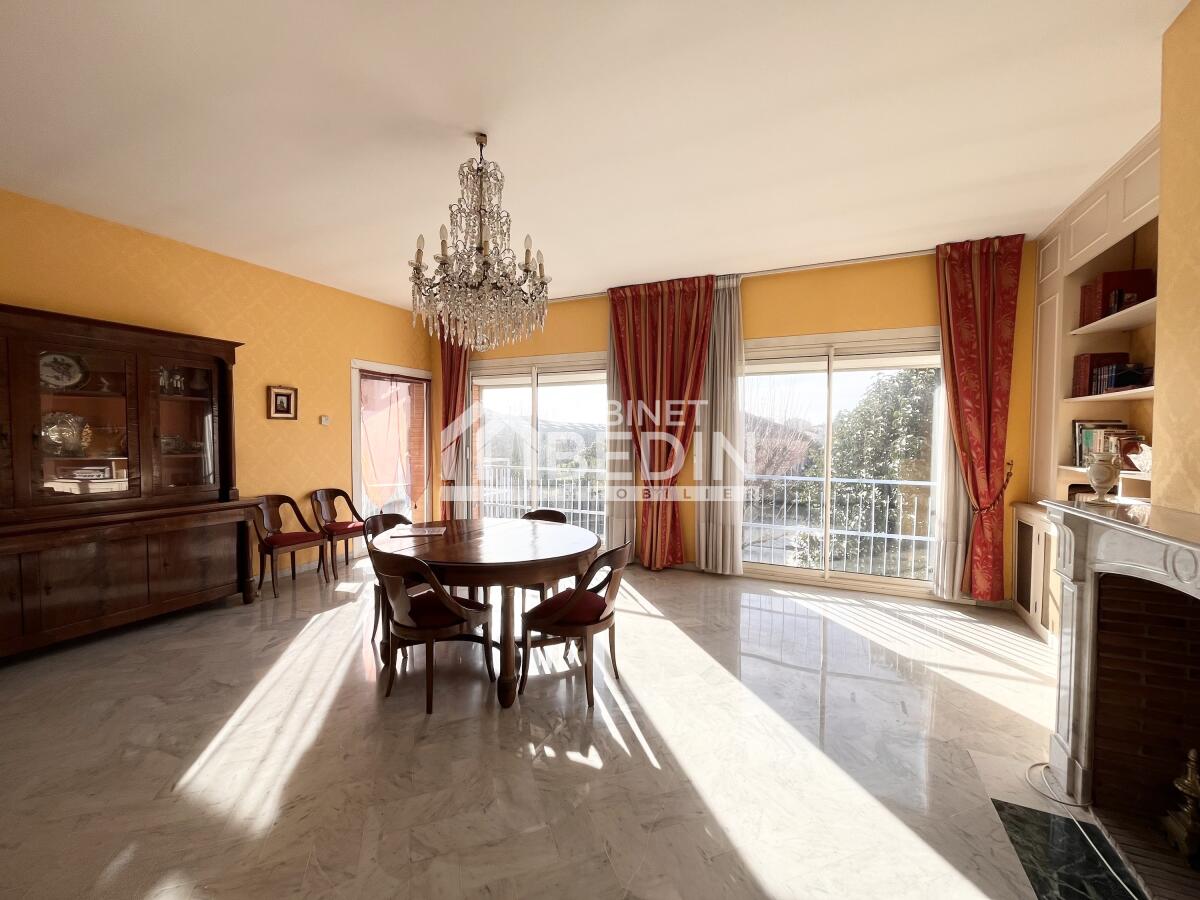 Grâce à son exposition sud-ouest, cet appartement bénéficie d?une luminosité remarquable tout au long de la journée. Il se compose d?une belle entrée, d?un très grand séjour avec baie vitrée, vue dégagée, cheminée fonctionnelle et sol en marbre, offrant un cadre de vie chaleureux et élégant.