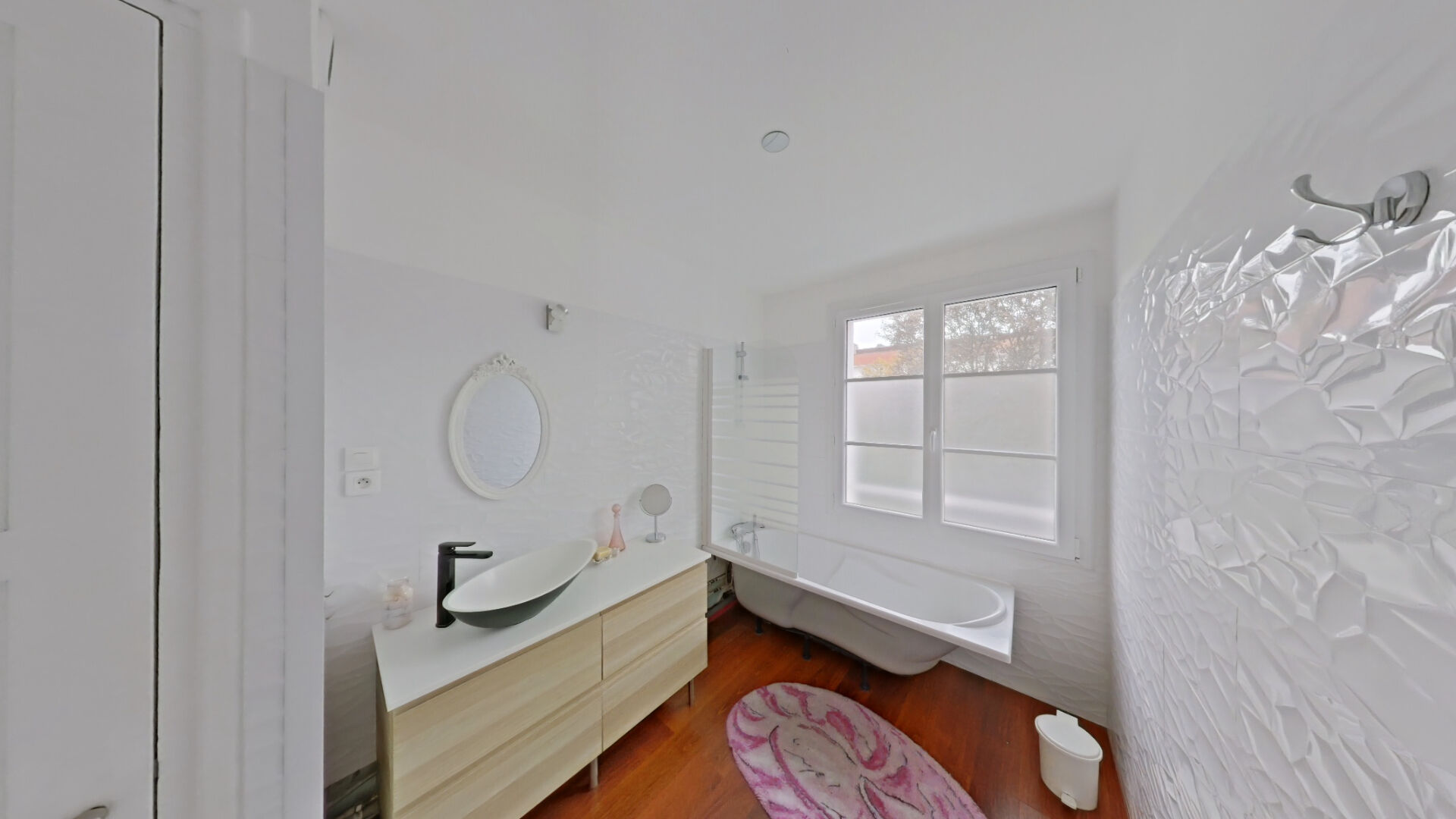 Fonctionnalité au rendez-vous : Une salle de bains soignée, des WC séparés, ainsi que de nombreux placards de rangement.