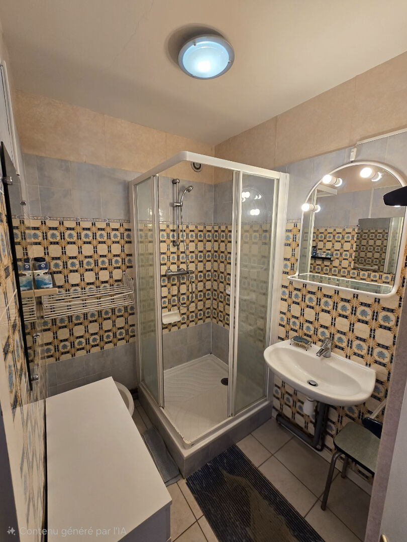 Dès l'entrée, un dégagement avec placards dessert une salle d'eau, des WC indépendants, ainsi qu'une chambre avec vue sur la mer, idéale pour se réveiller face à l'horizon.