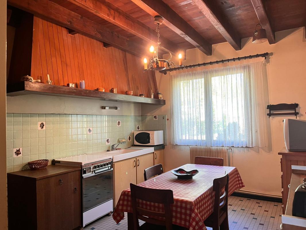 Proche bourg et commerces à pied, maison type villa landaise comprenant 3 pièces dont 2 chambres, séjour et cuisine exposé Nord, garage 33 m², abri voiture 40 m² et combles aménageables 47 m².