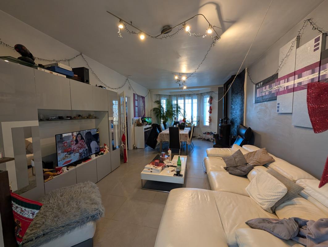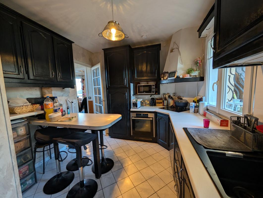 Sous-sol semi-enterré avec studio indépendant équipé d'une kitchenette, salle d'eau et WC. Garage et stationnement possible devant la maison. RER A à pied, écoles et commerces à pied. Chauffage gaz, grenier isolé, poêle, double vitrage