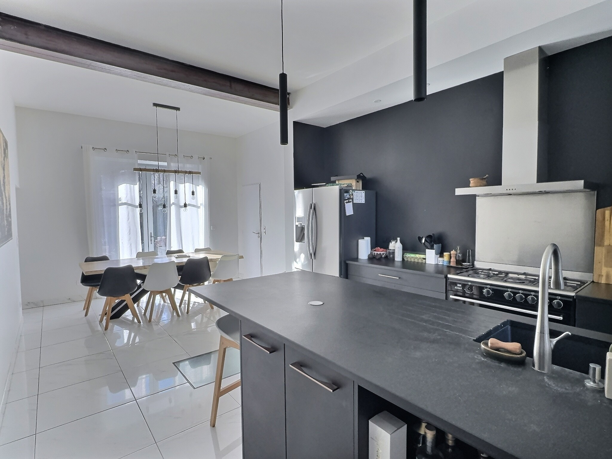 Au rez-de-chaussée, la Maison offre une grande cuisine aménagée et équipée, ouverte sur un séjour lumineux, ainsi qu'un salon traversant. Une cave à vin complète ce niveau.