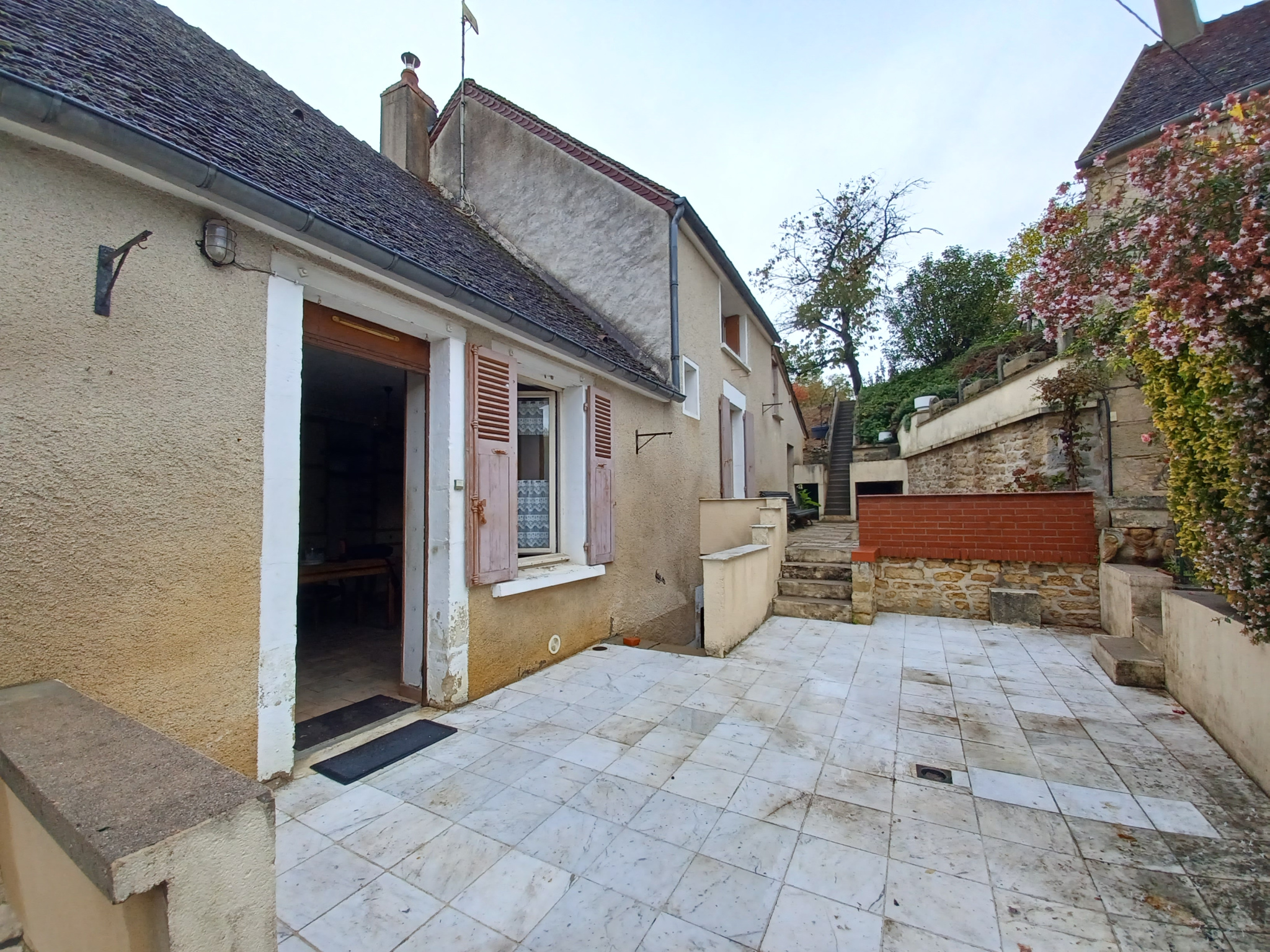 Grande terrasse et cour devnat et et jardin en prolongement.