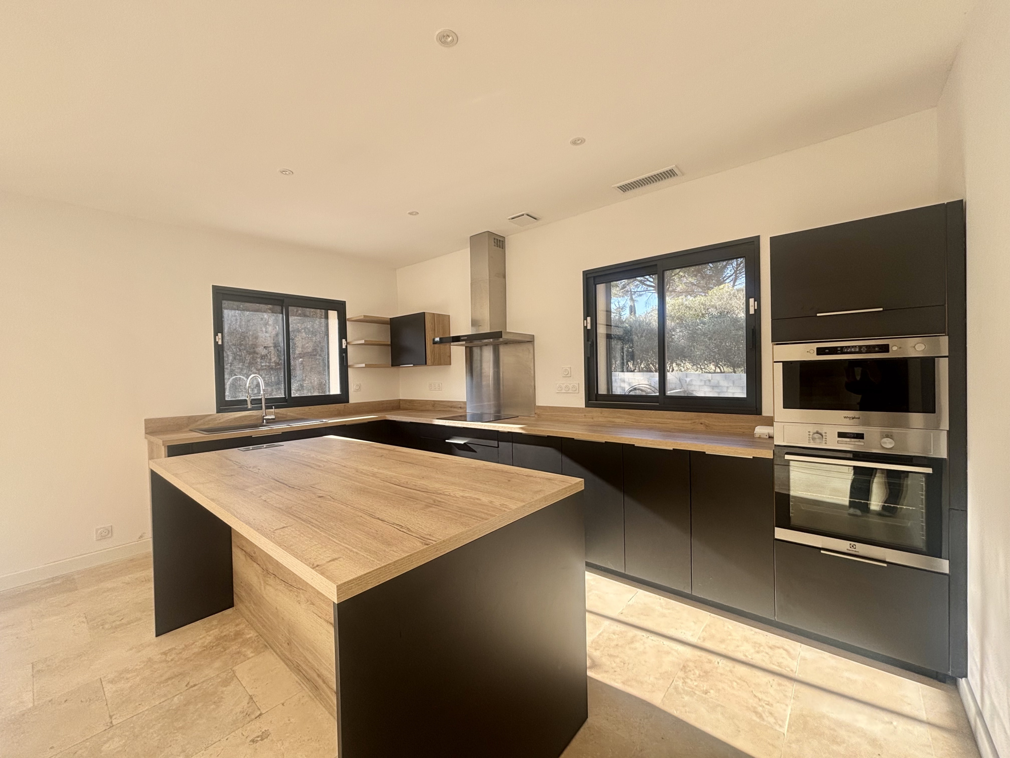 Elle offre une pièce de vie lumineuse comprenant une cuisine moderne et équipée, avec une buanderie attenante complétant cet espace.