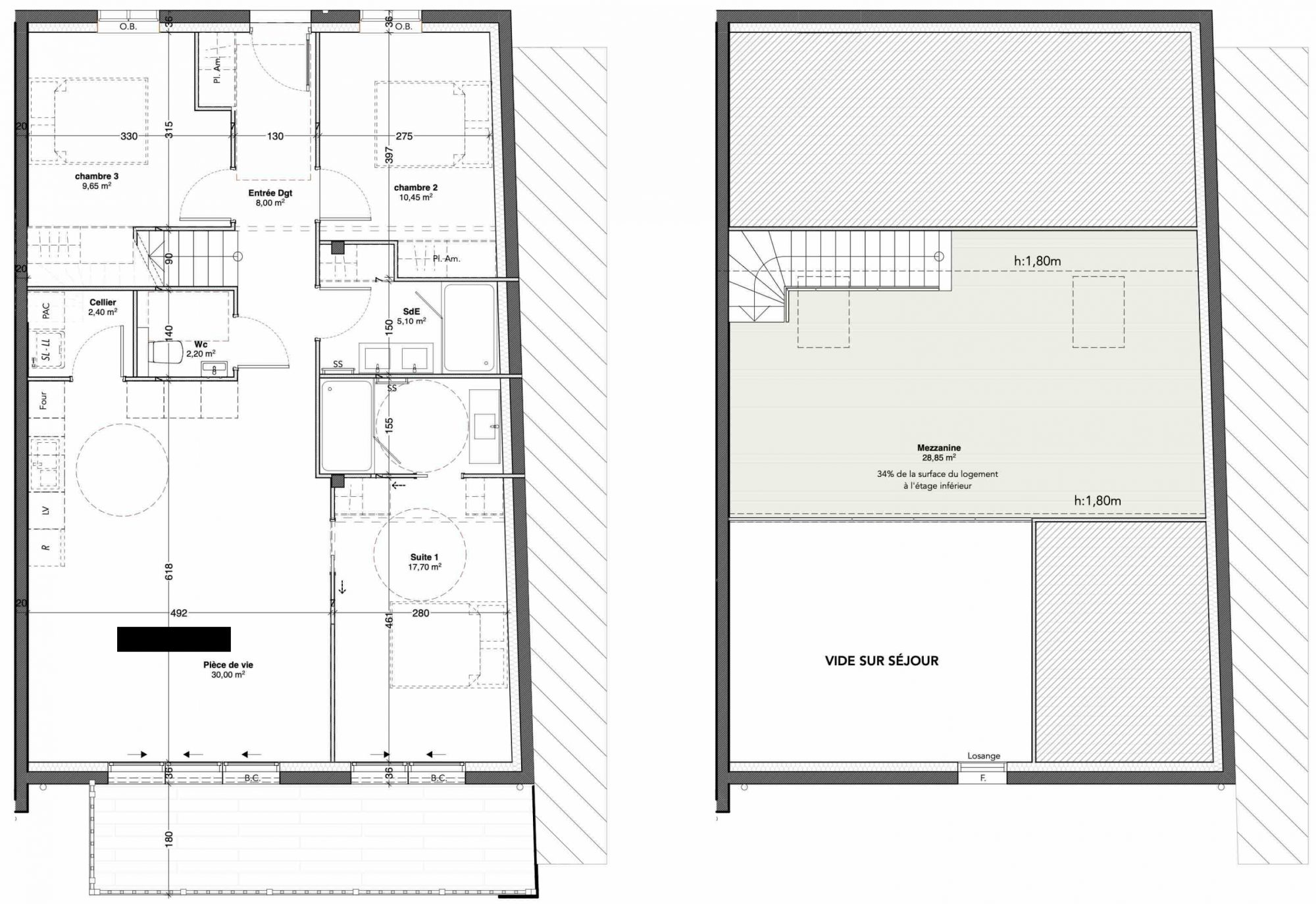 Grand T4 duplex au dernier étage comprenant au 1er niveau séjour, suite parentale, deux salles d'eau, wc, deux chambres, terrasse.
