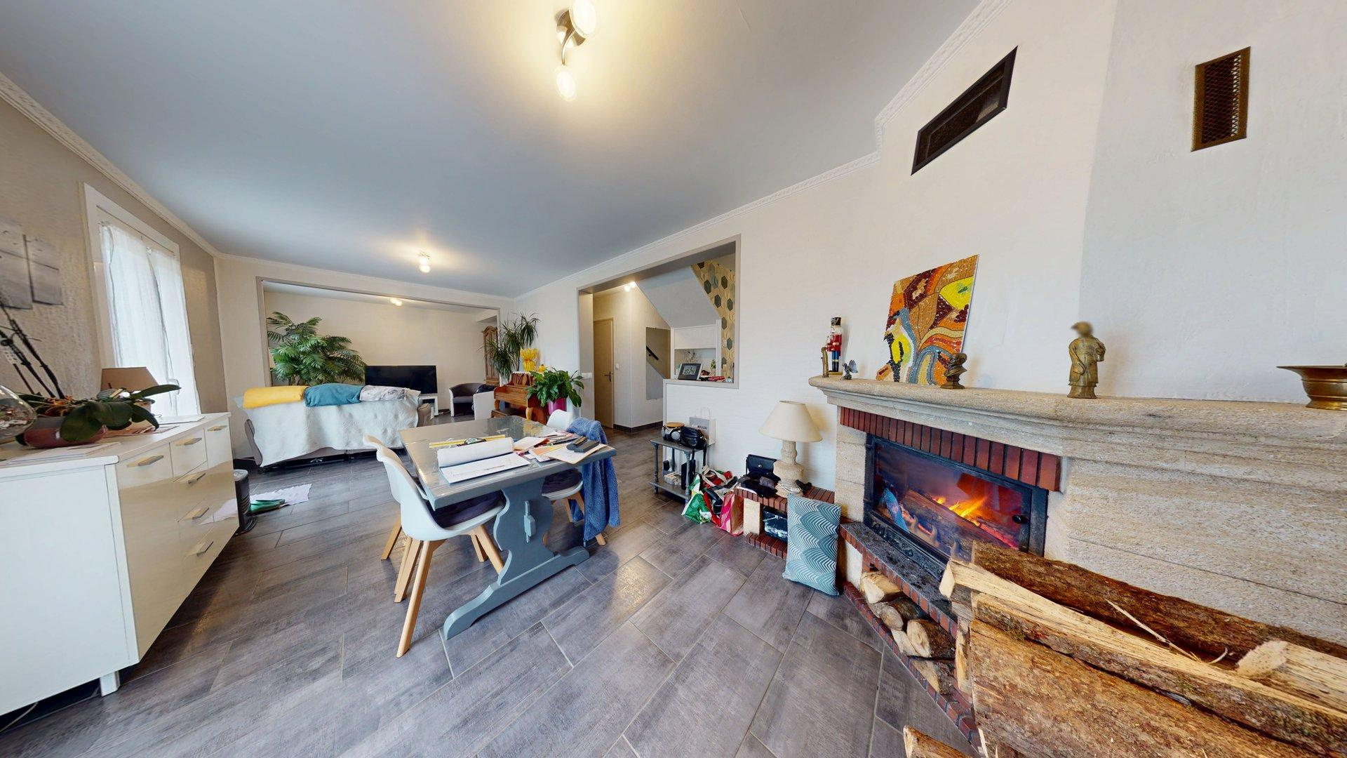 - Au rez-de-chaussée : Une belle entrée donnant sur une cuisine aménagée et équipée, un salon-séjour d'environ 30 m2 avec cheminée avec insert fonctionnelle, une chambre avec placards, une salle de bains, un couloir et un WC indépendant.