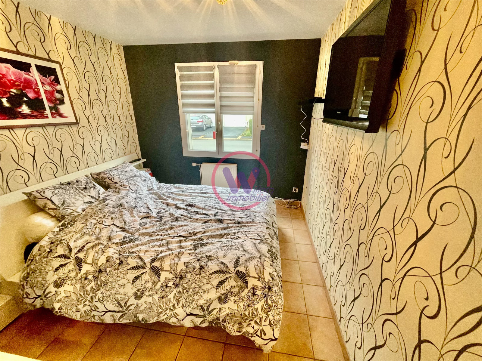 Maison individuelle de 116m2 bâtie sur 477m2 offrant entrée avec rangement, cuisine équipée ouverte sur séjour, WC, buanderie, une chambre au rez-de-chaussée, 3 chambres à l'étage avec une salle de bains, terrasse, jardin, garage et parking privatif.