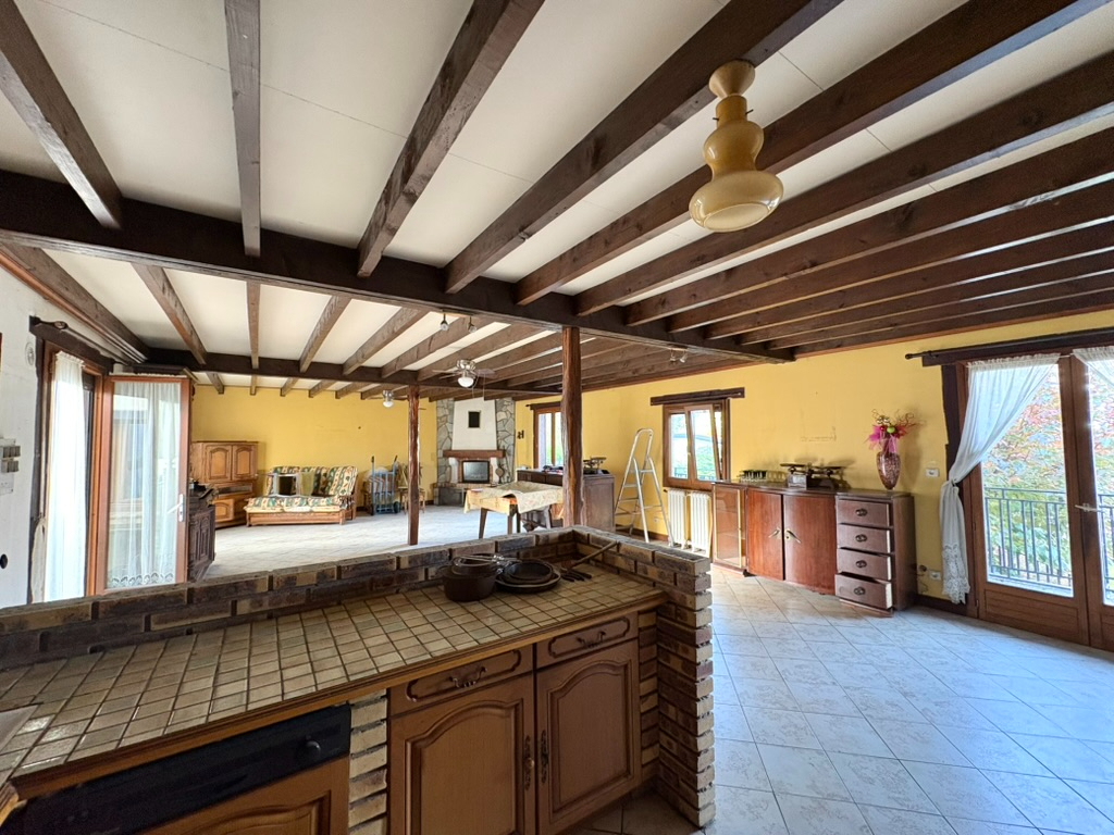 Au rez-de-chaussée : double séjour ultra spacieux de 70m² lumineux, cuisine américaine, une chambre, salle d'eau et WC séparé.
