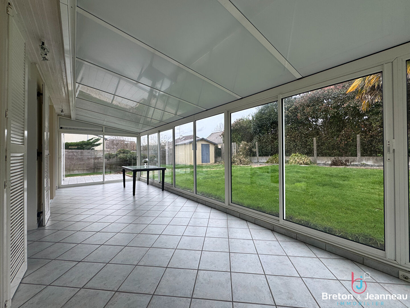Elle offre une entrée, un WC, une cuisine aménagée et équipée ouvrant sur une lumineuse véranda de 25 m² sans vis à vis, un salon/séjour convivial, deux chambres, ainsi qu'une salle d'eau moderne avec douche à l'italienne.