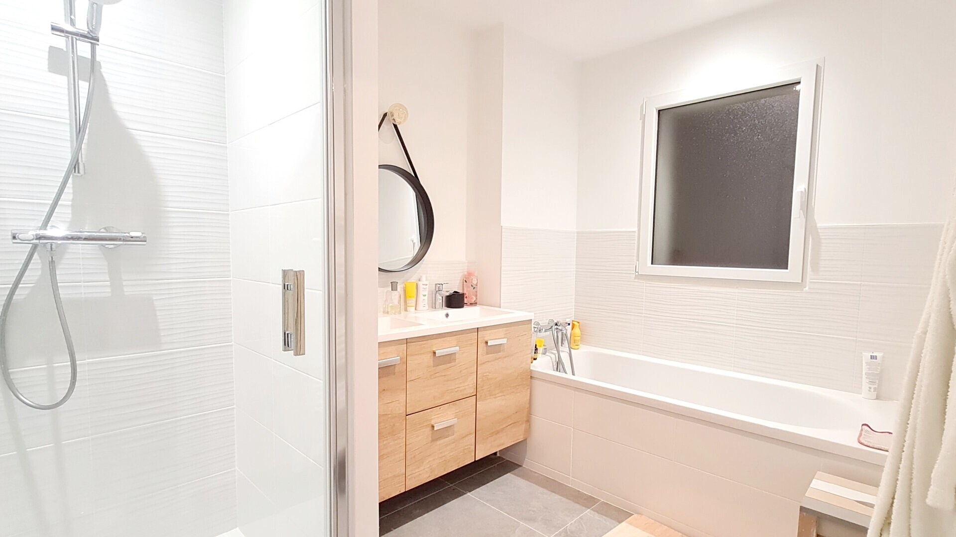 Le rez-de-chaussée s'ouvre sur une pièce de vie intégrant une cuisine aménagée et équipée. Ce vaste séjour communique directement avec une terrasse spectaculaire de 80 m² exposée Est. Ce niveau propose également une suite parentale avec salle d'eau privative et dressing.