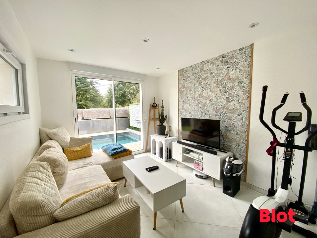 Découvrez cette maison rénovée avec piscine, cadre campagne à 5 mins du centre bourg.