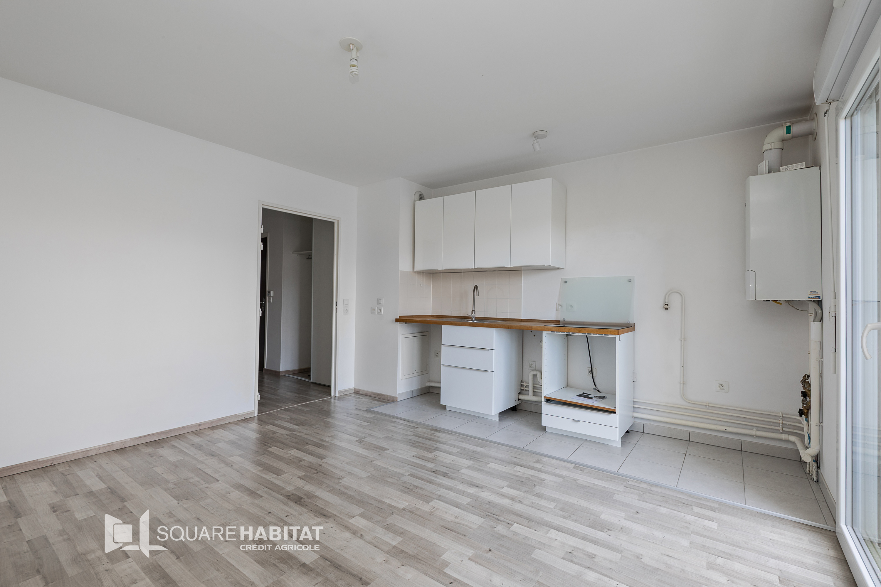Appartement 2 pièces accesssible PMR situé au 1er étage d'une petite copropriété récente comprenant : entrée, séjour-cuisine, une chambre, salle de douche et WC séparé.