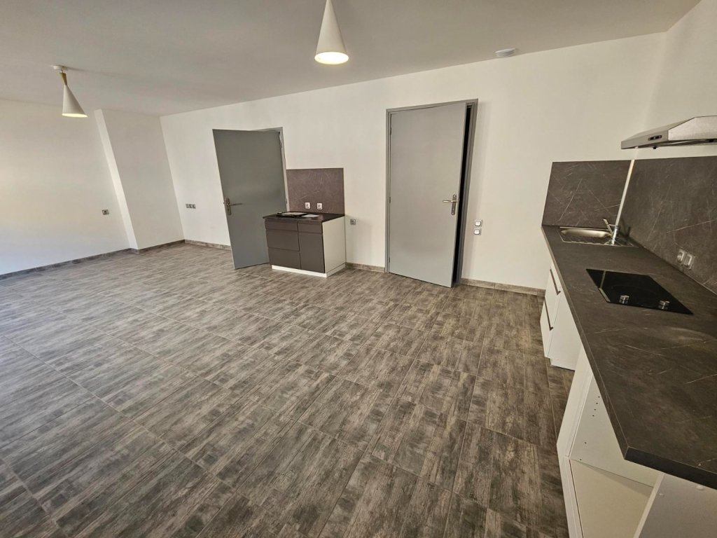 PROCHE PLACE SCHNEIDER, UN T2 REFAIT A NEUF DE 59 M² AU REZ DE CHAUSSEE COMPRENANT UNE CUISINE EQUIPEE (meuble de rangement, hotte et plaques de cuisson) OUVERTE SUR GRAND SEJOUR. UNE CHAMBRE, UNE SALLE DE BAINS AVEC DOUCHE ITALIENNE, WC SEPARE.