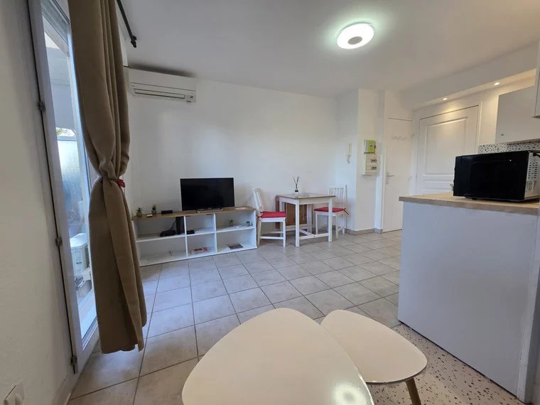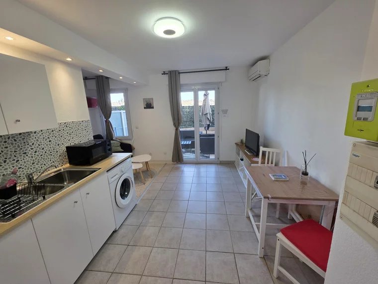 À Saint-Laurent-du-Var, dans le quartier des Rascas, studio meublé de 22 m² en rez-de-jardin avec 30 m² d’extérieur vendu dans une résidence de bon standing avec piscine. Il se compose d’un hall d’entrée avec placard, d’une salle de bains avec WC, d’une cuisine équipée ouverte sur le séjour avec coin nuit. Le bien est en bon état général et équipé de la climatisation réversible. L’extérieur se compose d’une terrasse de 15 m² et d’une jardinière-potager d’environ 14 m². Stationnement proche de la résidence. Ce bien présente un fort potentiel locatif grâce à la vente meublée, la présence de services (piscine), la localisation et le bon état intérieur, idéal pour un investissement locatif traditionnel ou meublé. Procédures en cours dans la copropriété. Possibilité d’acquérir un emplacement de parking extérieur en supplément.