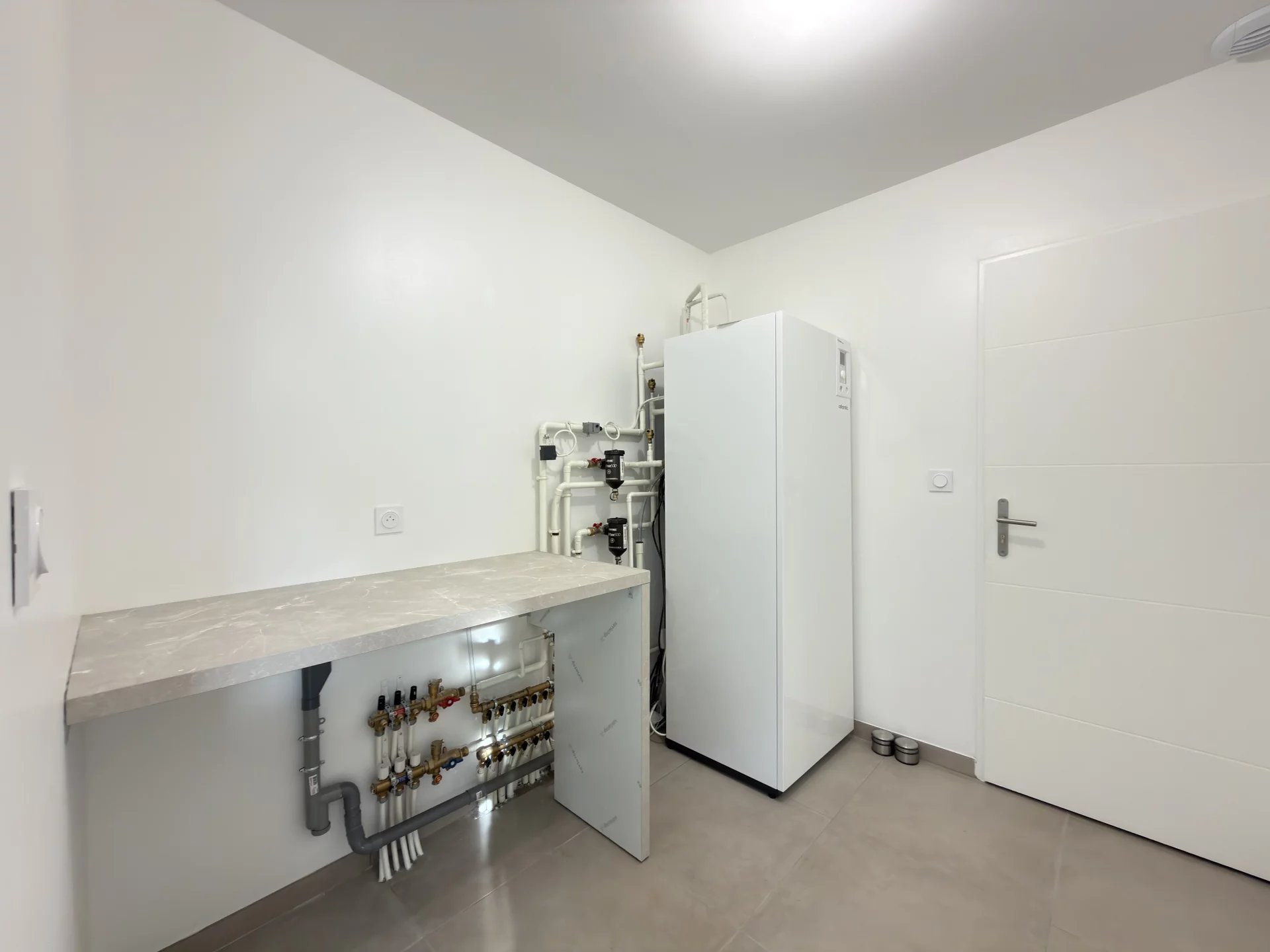 Le confort est assuré par un chauffage au sol double zone (pièce de vie / chambres), programmable, alimenté par une pompe à chaleur, garantissant bien-être et performance énergétique.