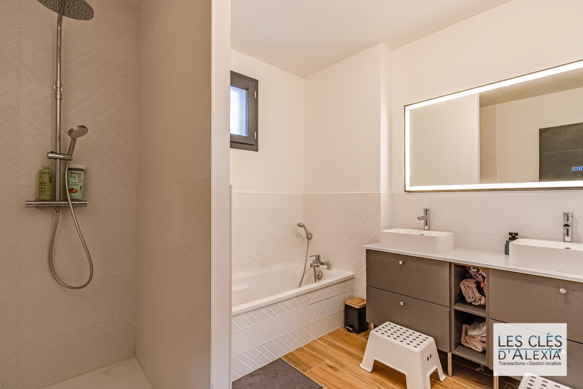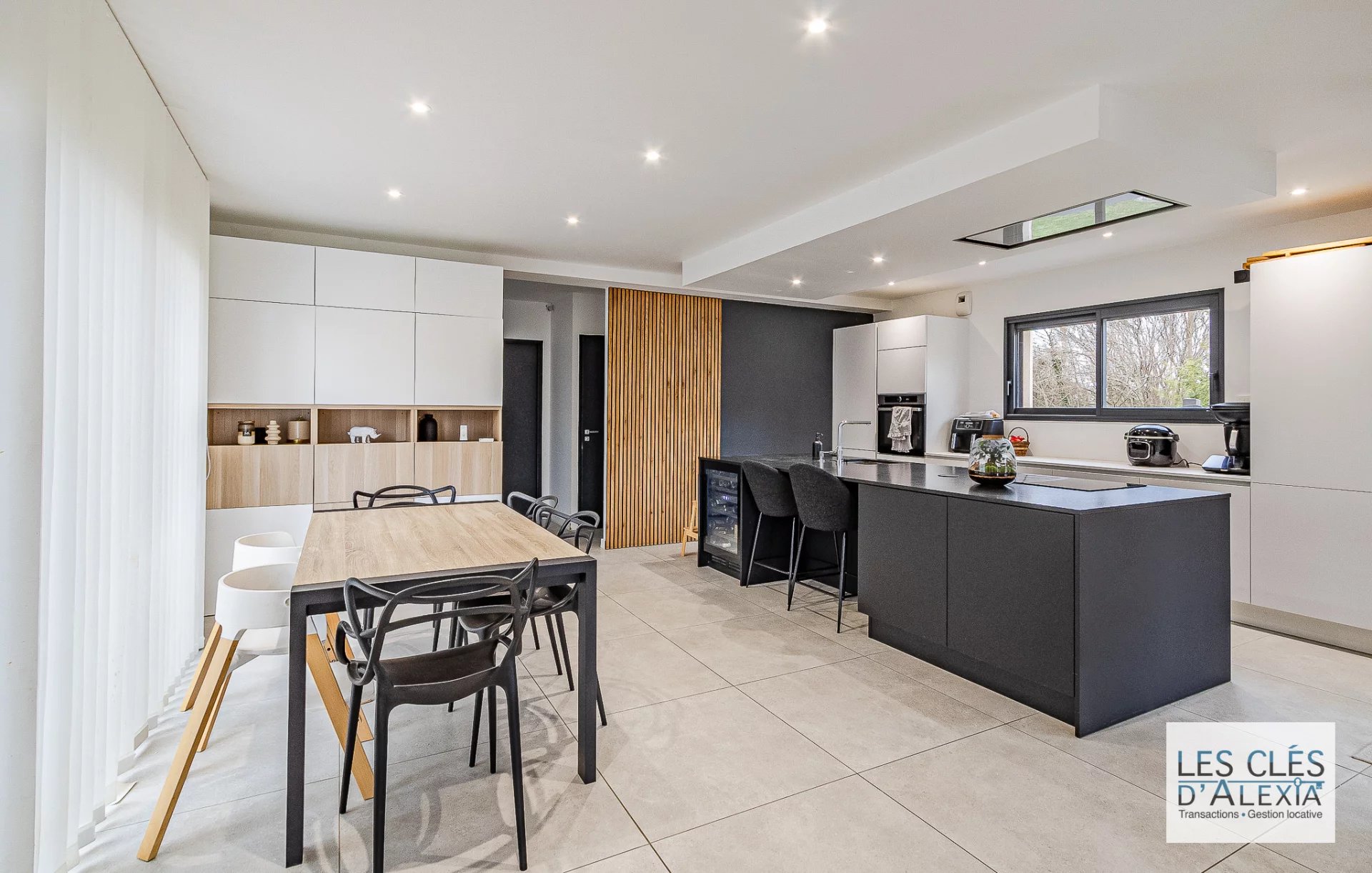 Dès l’entrée, vous serez séduit par une cuisine moderne ouverte sur une grande pièce de vie de 54 m², pensée pour allier convivialité et espace de réception. Au rez-de-chaussée, vous trouverez également une chambre parentale avec dressing et douche privative, une buanderie ainsi qu’un toilette indépendant, pour un confort optimal au quotidien.
