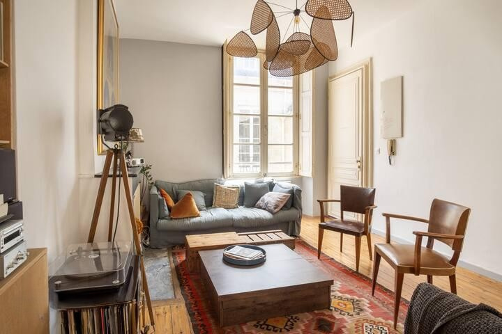 À proximité immédiate du Grand Théâtre, au sein d'un magnifique immeuble en pierre aux parties communes récemment ravalées, ce duplex traversant d'exception occupe le troisième et dernier étage sur entresol et bénéficie d'une luminosité remarquable. Le premier niveau se compose d'une vaste pièce de vie réunissant séjour / salle à manger, cuisine ouverte parfaitement intégrée et toilette indépendant. À l'étage, l'espace nuit présente deux chambres dont une très grande au charme mansardé, salle de bains et toilette indépendant. Un bien rare, alliant cachet de l'ancien, volumes et emplacement privilégié.