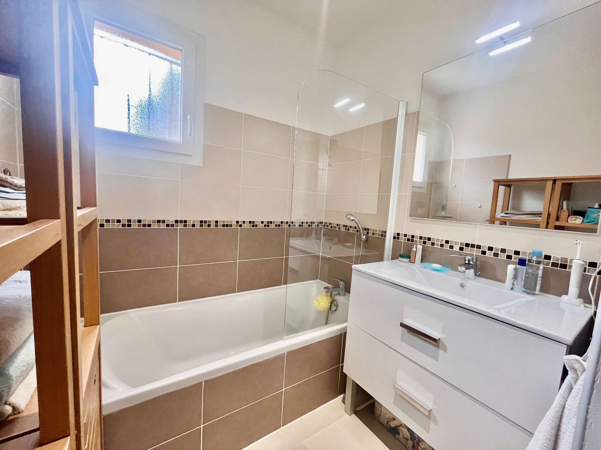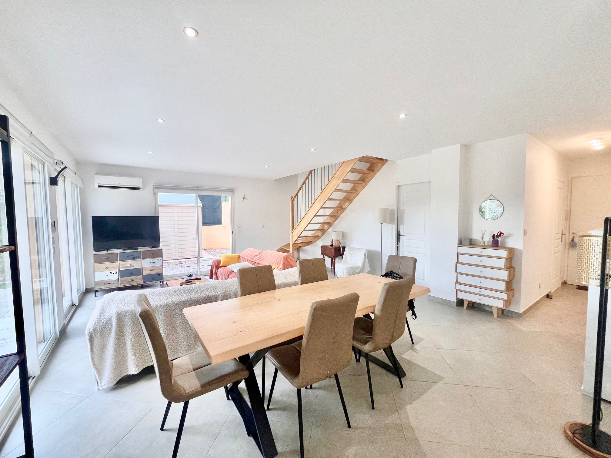 Idéalement placée, Villa individuelle récente - état proche du neuf, type 4 pièces composée d'une entrée, cuisine équipée ouverte sur le séjour, chambre avec salle d'eau de plain-pied. A l'étage : 2 chambres, salle de bains, toilettes séparées.. Accès au garage depuis l'intérieur. Vaste terrasse exposée Est/Sud, Abri de jardin, parking pour 4 véhicules et terrain plat de 367m2. Climatisation gainable, double vitrage, portail automatique. A voir !