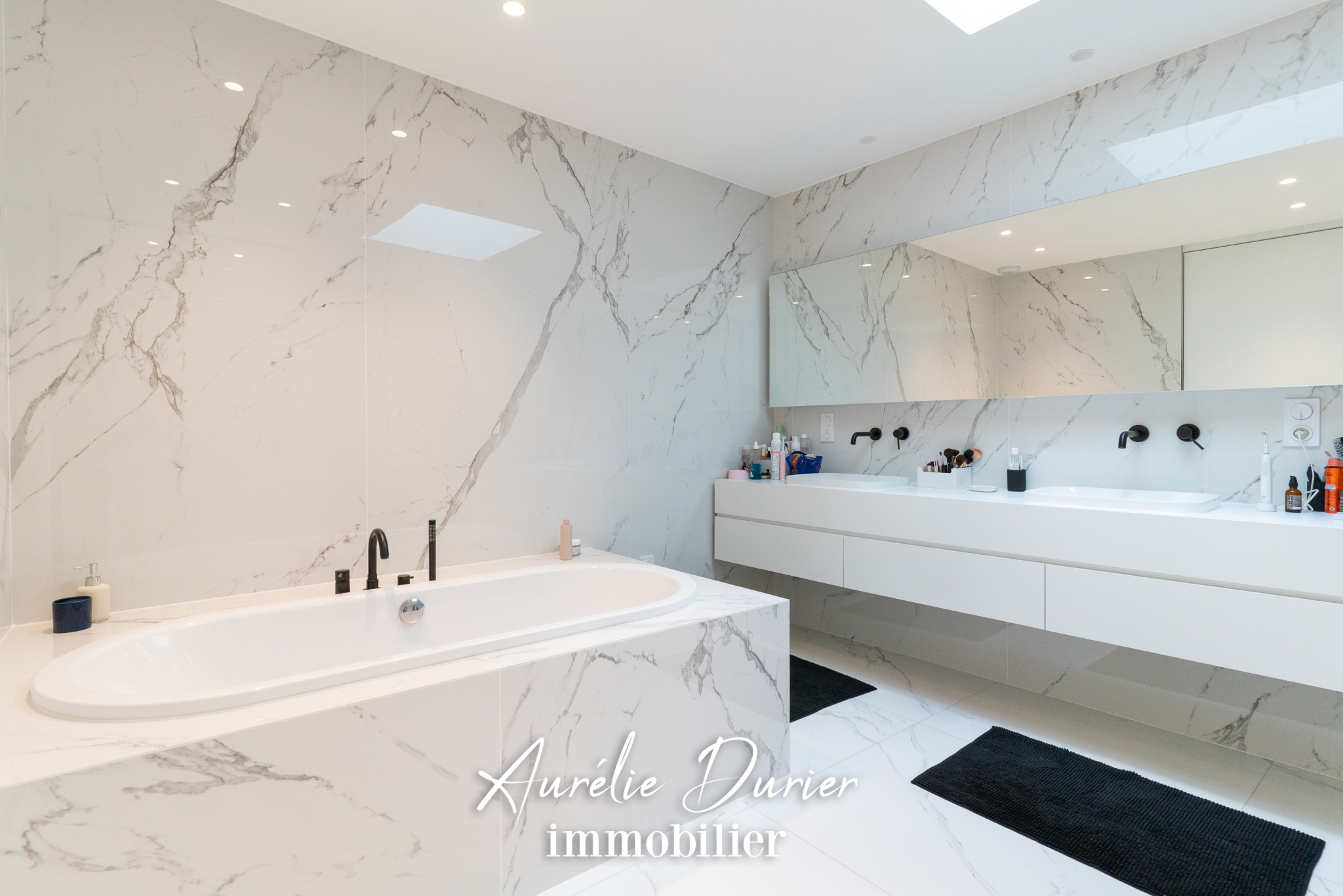 Côté extérieur, le jardin contemporain paysagé avec sa terrasse est un véritable havre de paix, pensé comme une pièce à vivre à part entière. Le double garage quant à lui offre un espace sécurisé pour véhicules, motos ou vélos.