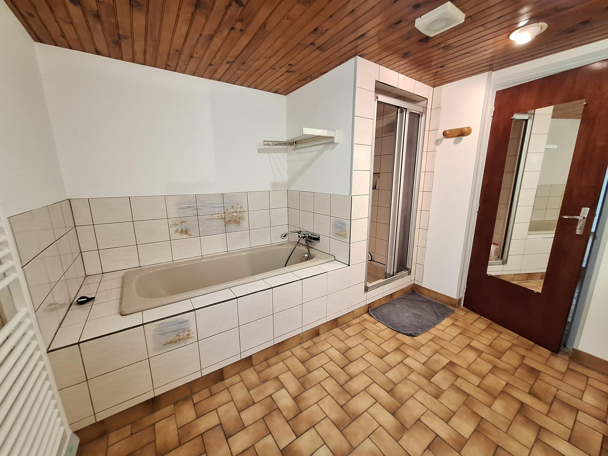 sous sol avec accès voiture , terrasse couverte, jardin clos de 366m2 , chauffage central au gaz de ville !
