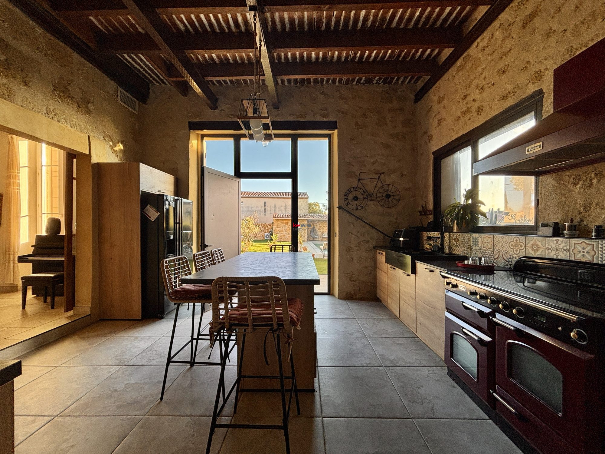 Vous serez séduit par l'aspect authentique des pierres apparentes. Exposée plein sud, la maison profite de l'ombre d'un platane centenaire et d'une vaste pelouse exceptionnellement verte qui entoure la nouvelle piscine en béton, accompagnée d'un charmant pool house.