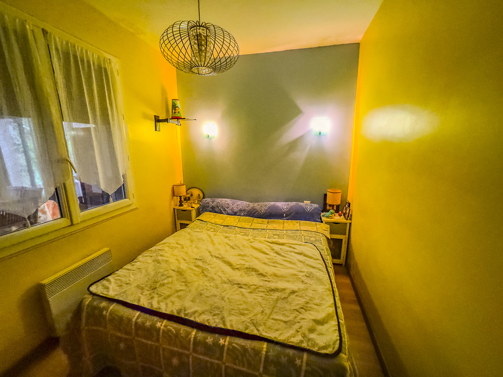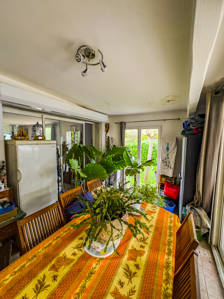 Elle se compose d'un séjour lumineux ouvrant sur le jardin, d'une cuisine équipée, de deux chambres, d'une salle d'eau avec WC et d'une véranda offrant un espace de vie supplémentaire.