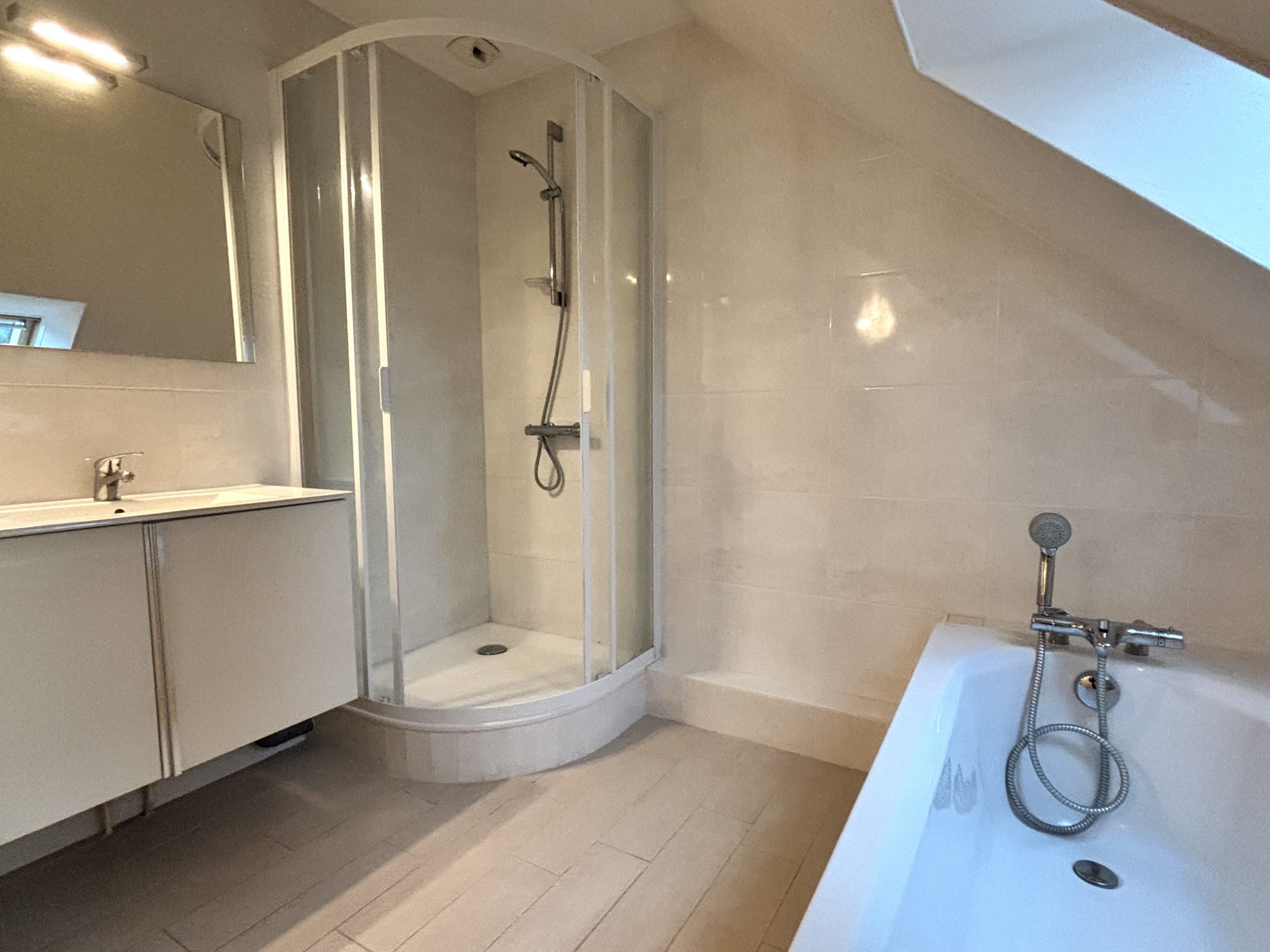 À l'étage : trois belles chambres et une salle de bain.