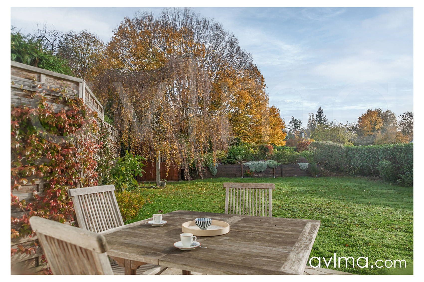 À l'extérieur, le jardin paysagé, exposé sud-est, invite à profiter pleinement des beaux jours dans un cadre verdoyant et paisible.