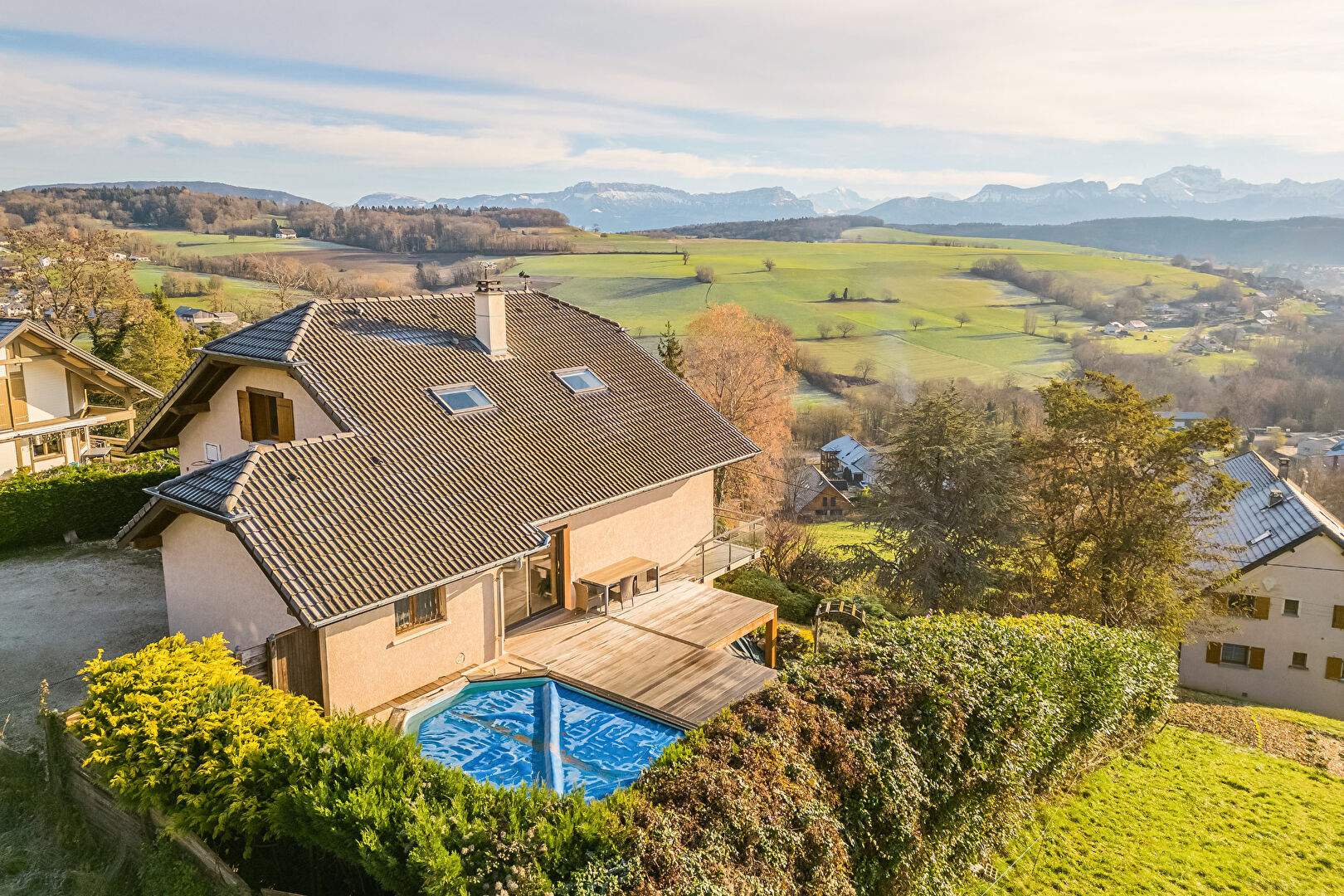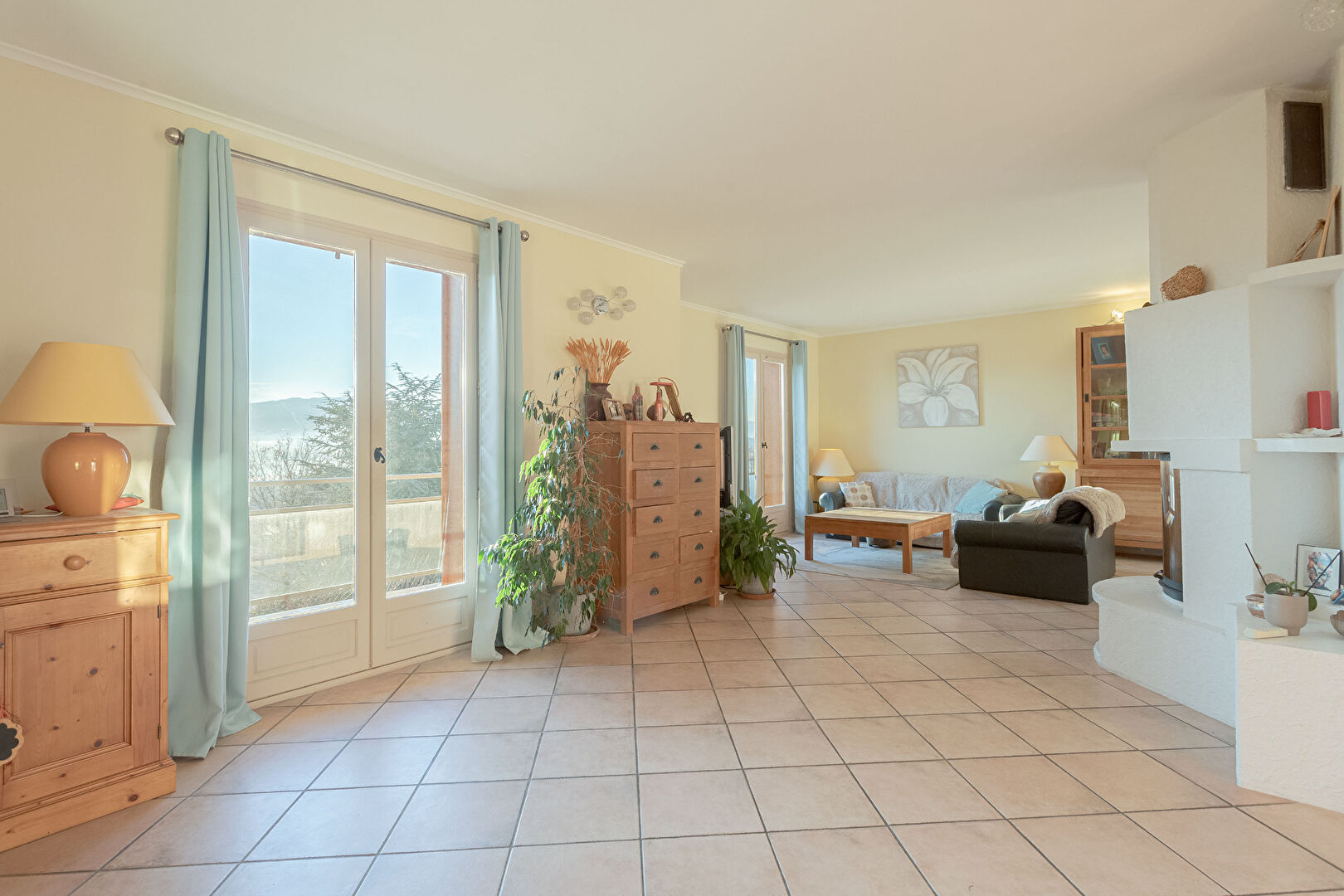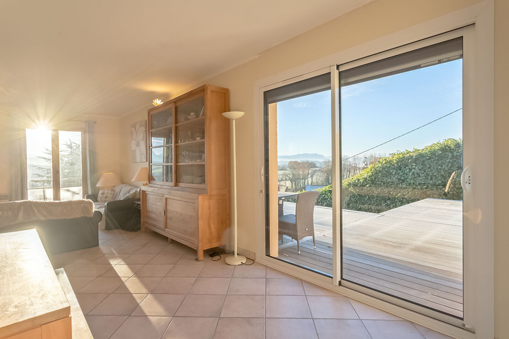 Le tout ouvrant sur une grande terrasse vous offrant une vue panoramique sur les montagnes de la région ( Tournette, Parmelan, Semnoz, Mont-Veyrier et même.... Le Mont-Blanc).