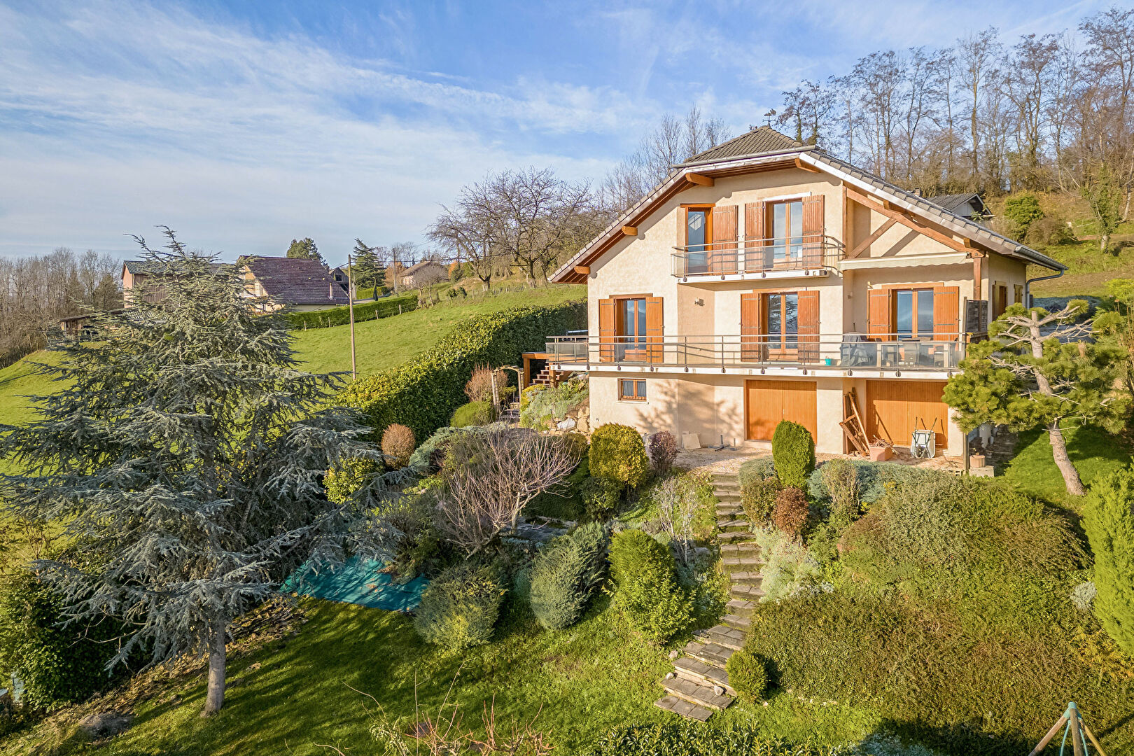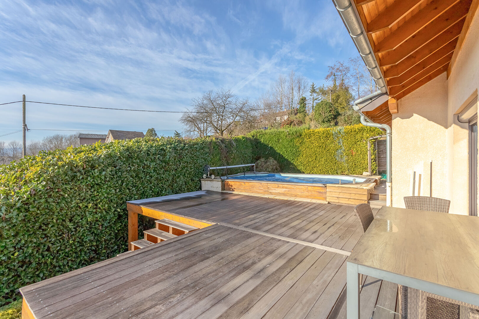 LRB Immobilier Annecy vous présente sur la commune de VAULX (74150), une maison de 236m2 dont 150m2 habitables sur un terrain pentu de 1050m2.