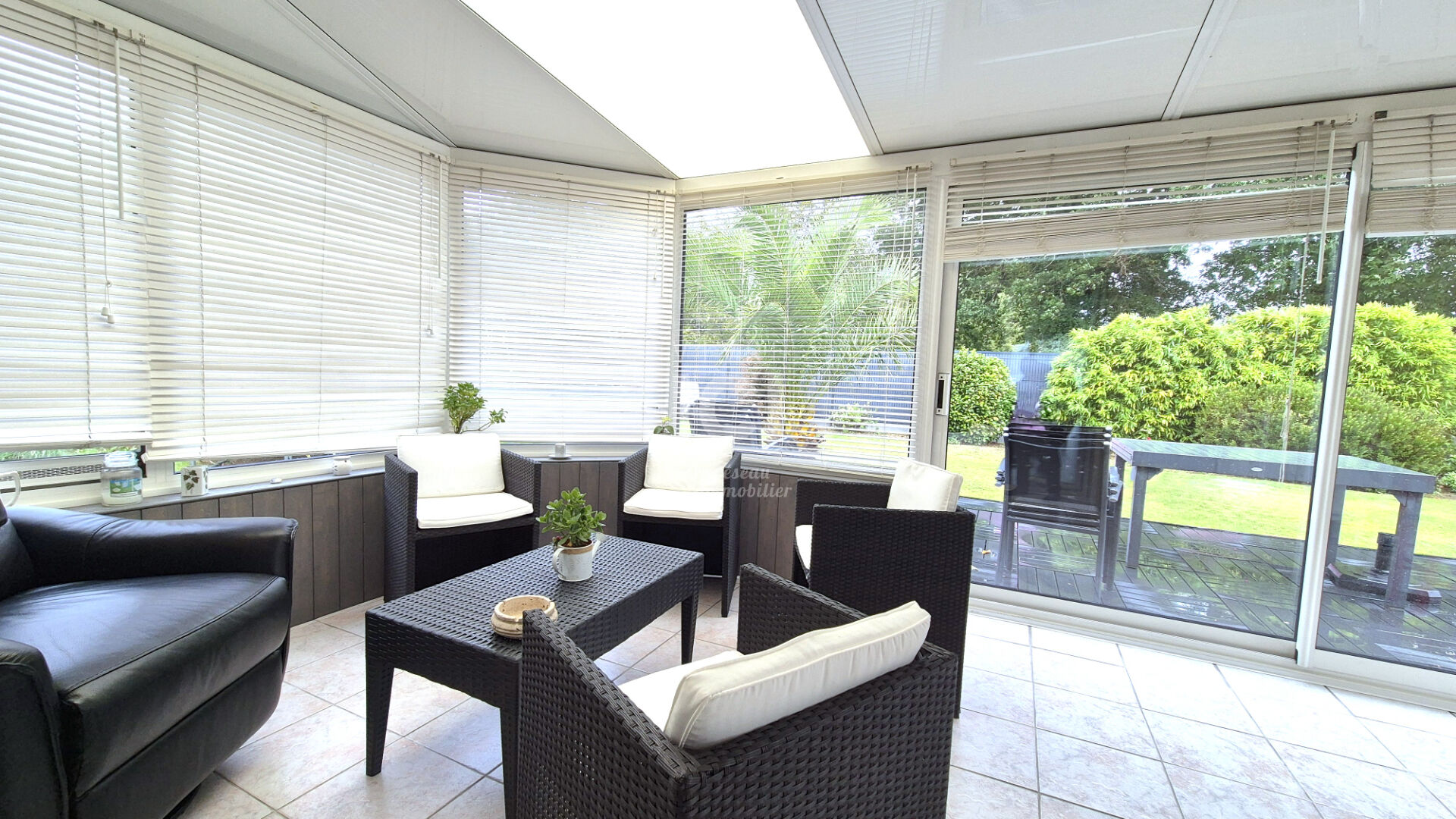 La lumière s'y installe naturellement, animant un séjour prolongé par une véranda chauffée de 23 m², véritable trait d'union entre l'intérieur et le jardin. La cuisine Schmidt, aménagée et équipée, accompagne les instants du quotidien avec élégance et fonctionnalité.