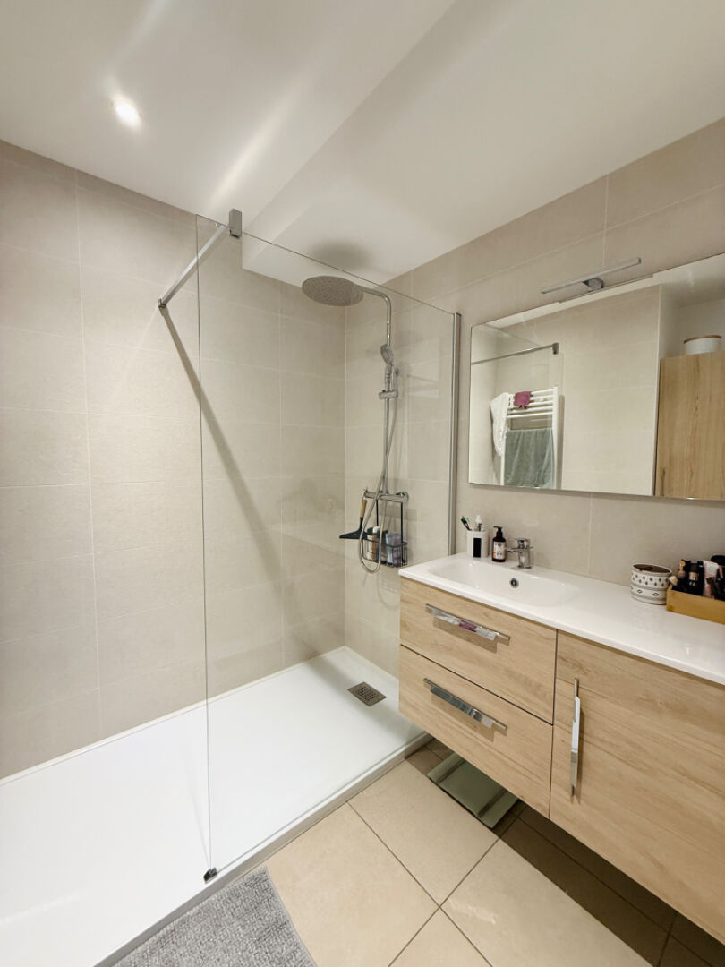 À l'étage, un dégagement dessert une magnifique pièce de vie baignée de lumière grâce à son exposition sud-ouest, avec un accès direct à une spacieuse terrasse de 25 m², intime et sans vis-à-vis, parfaite pour vos moments de détente en extérieur.