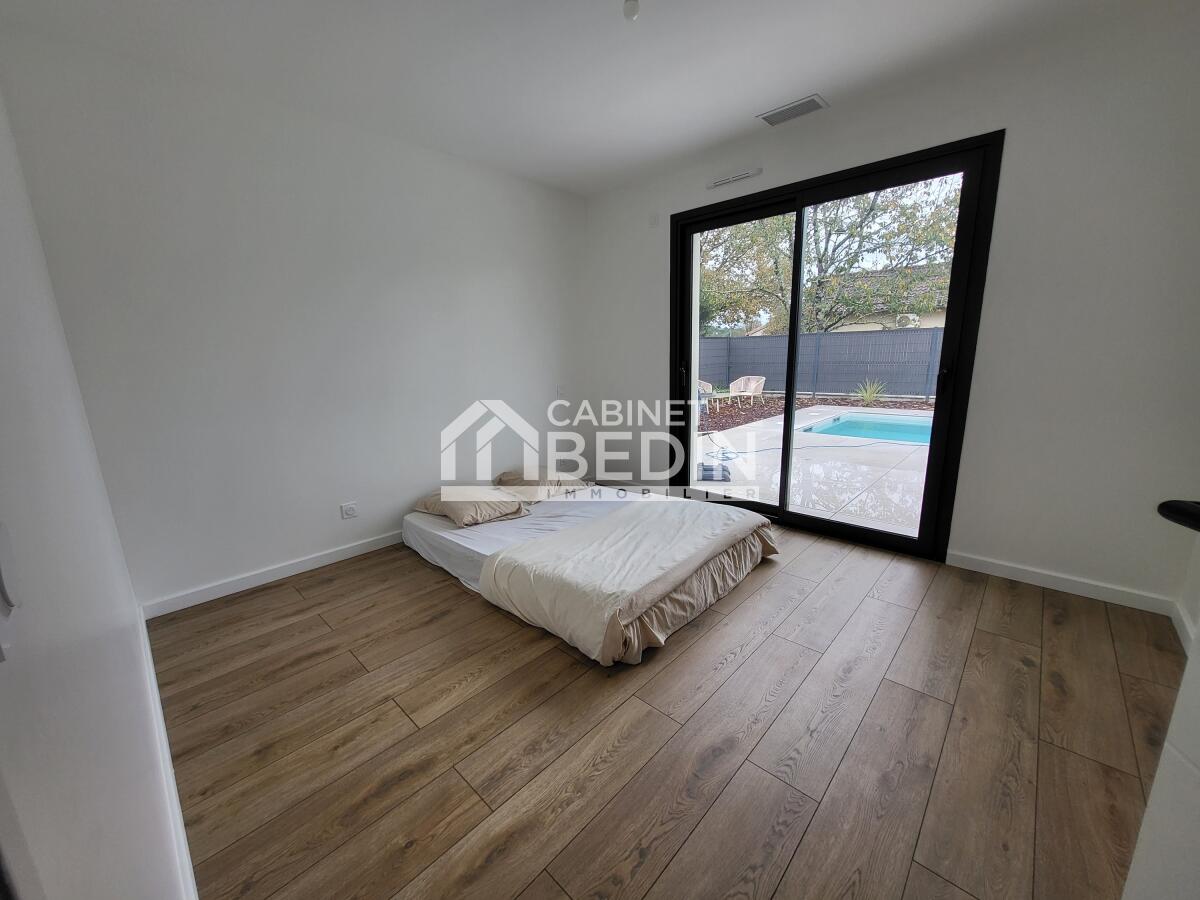 Maison contemporaine neuve ? Langon. Achevée en juin, cette maison de 119 m² allie confort et prestations soignées. Construite avec des matériaux de qualité, elle offre un cadre de vie moderne et économe en énergie.