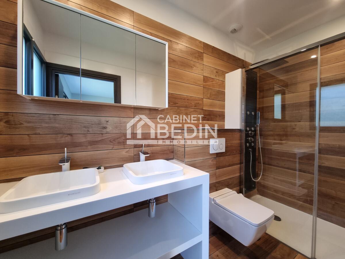 Venez découvrir cette superbe villa contemporaine de plain-pied, récente et parfaitement entretenue, idéalement située dans un quartier résidentiel calme du Bassin d?Arcachon. Nichée au c?ur d?un magnifique jardin clos et paysagé de plus de 1 200 m², elle offre un cadre de vie lumineux et apaisant.