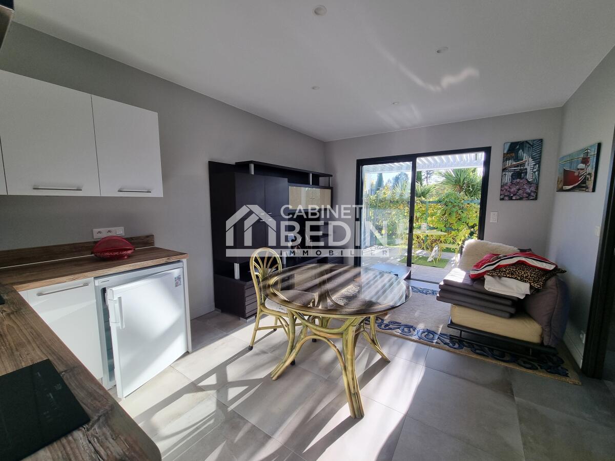 Attenant à la villa mais bénéficiant de sa propre entrée indépendante, un logement T2 complète ce bien. Il comprend un salon/séjour avec cuisine équipée, une chambre avec placards, une salle d?eau et une terrasse agrémentée d?une pergola bioclimatique.