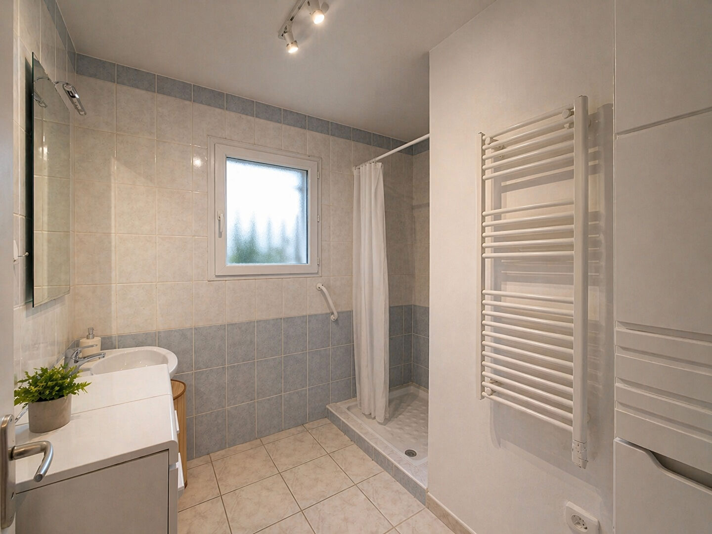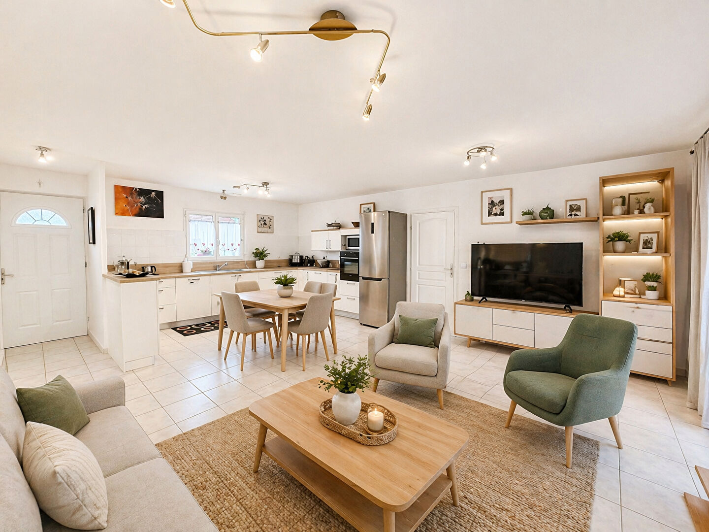 Elle se compose d'une belle pièce de vie lumineuse avec salon/séjour et cuisine ouverte, offrant un espace convivial et fonctionnel.