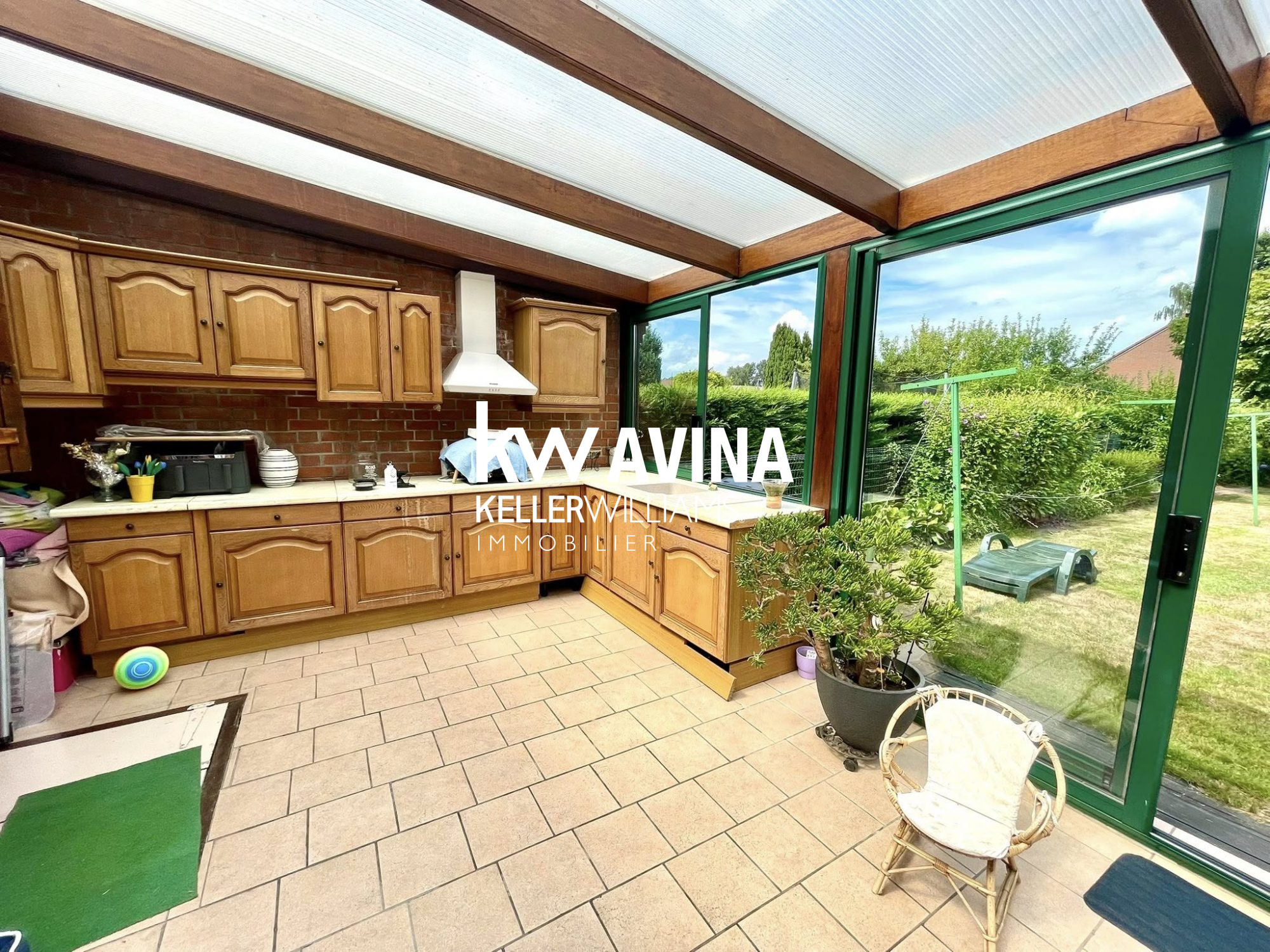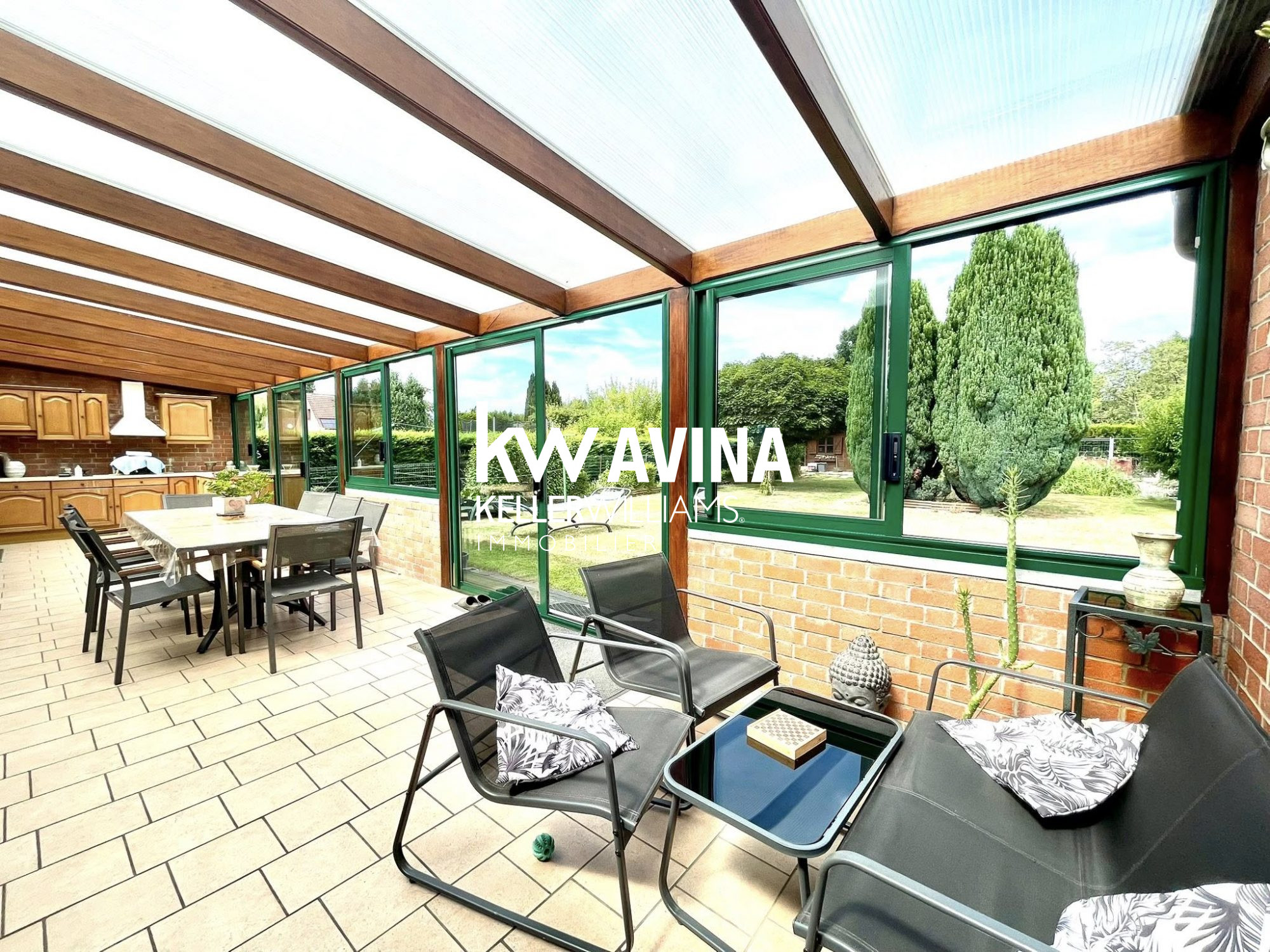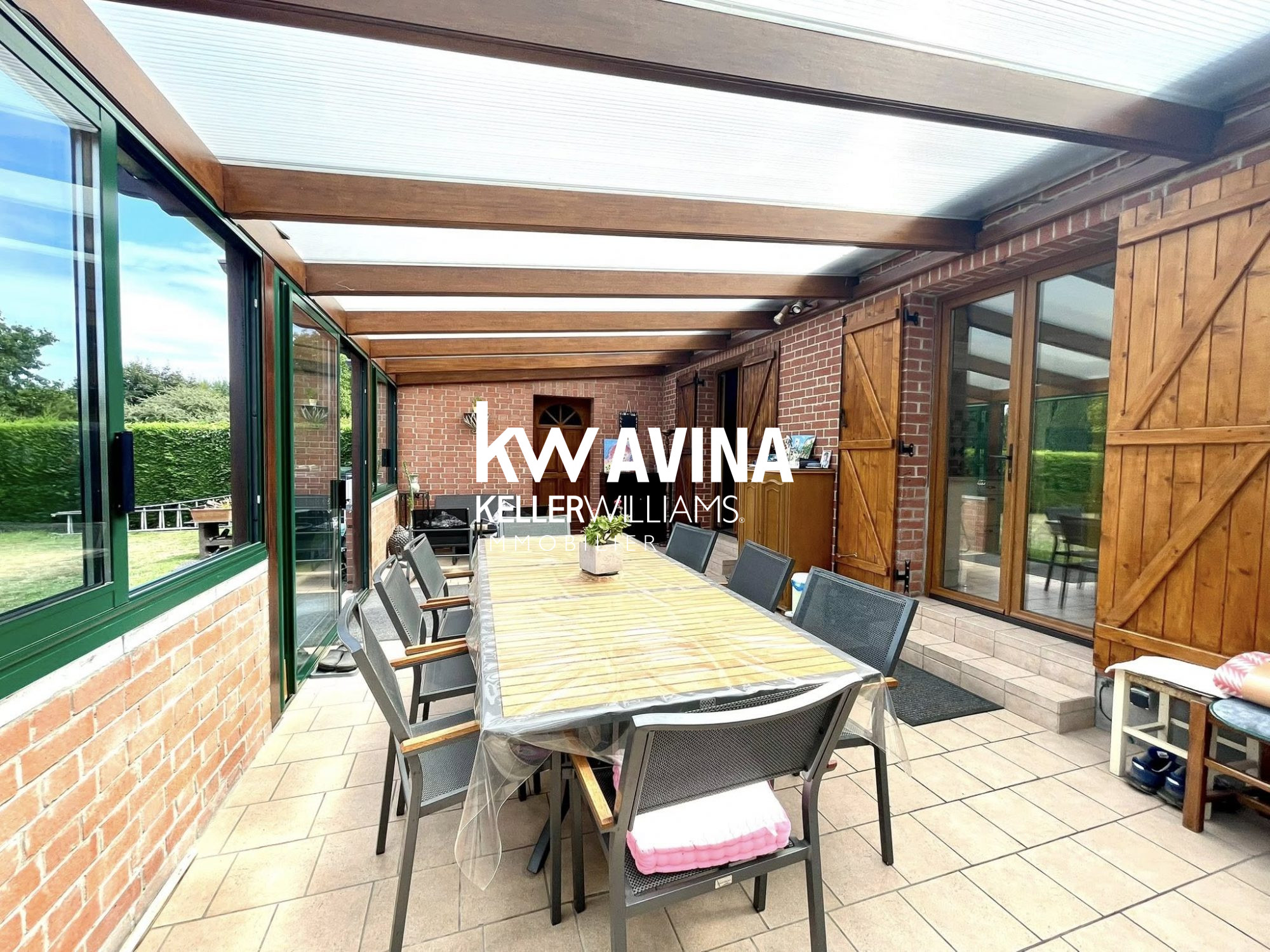 Très grande véranda (44 m2) idéal pour profiter de l'extérieur en toute saison.