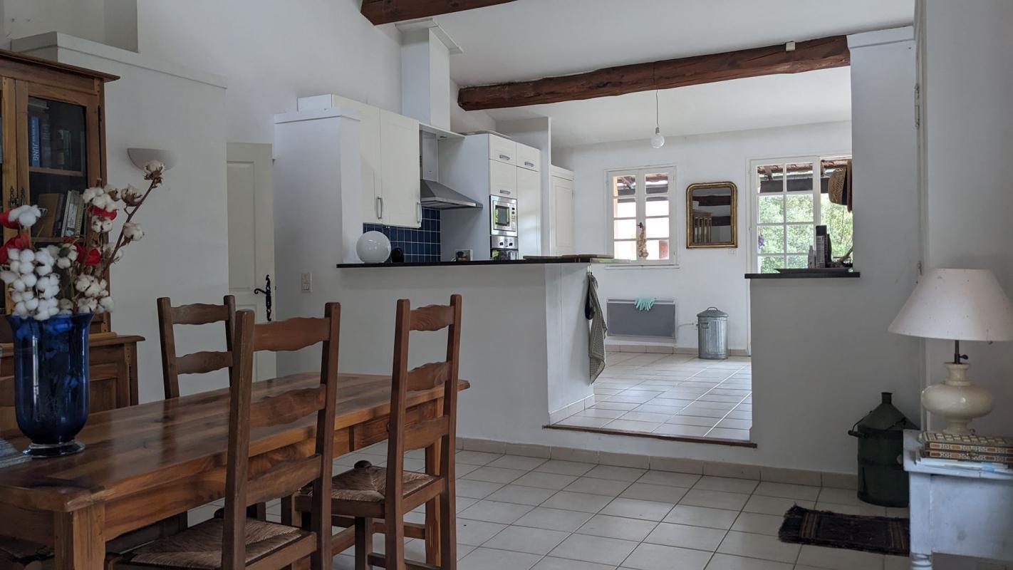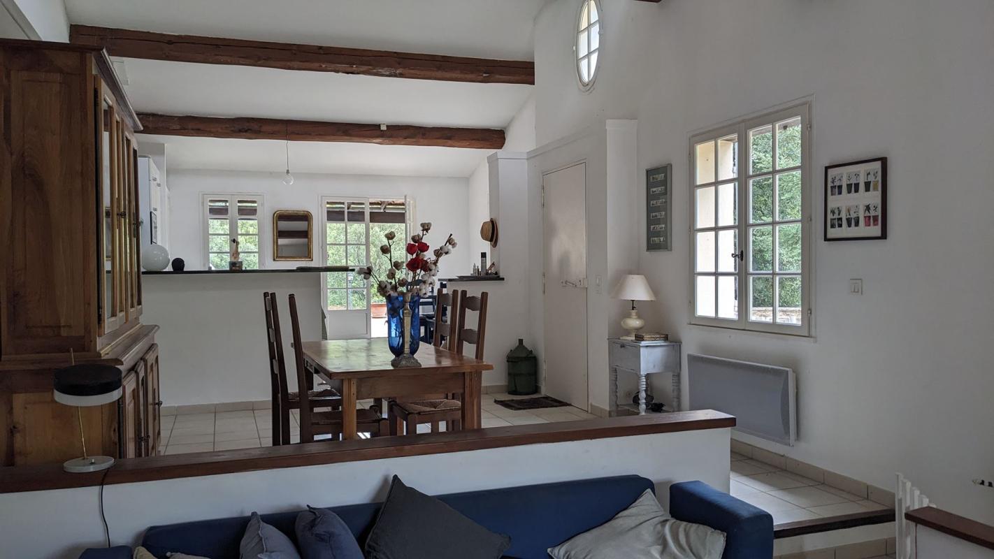 - en rez-de-chaussée : cuisine ouverte entièrement équipée, un salon, un séjour avec cheminée, 1 chambre (15.5 m2) avec terrasse, 1 WC indépendant et une grande salle de bains (8 m2). La cuisine ouvre sur une belle terrasse côté Sud et Ouest.